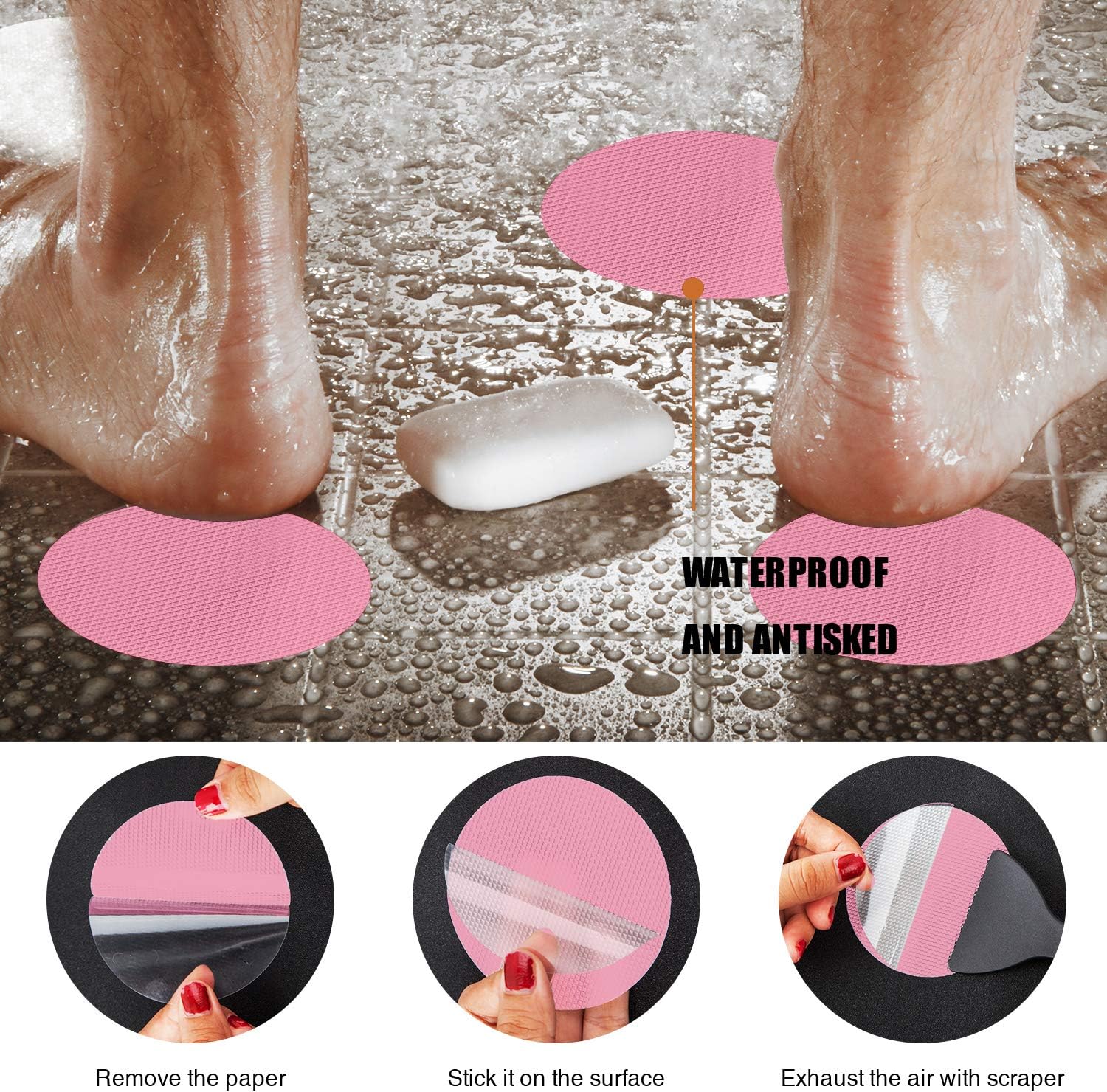 - Anti-Slip Design: Each shower non-slip sticker has approx 1,250 tiny protrusions on the top surface to enhance friction and prevent soapy water buildup. It aids safer family use on bathtubs, bathroom floors, or stairs