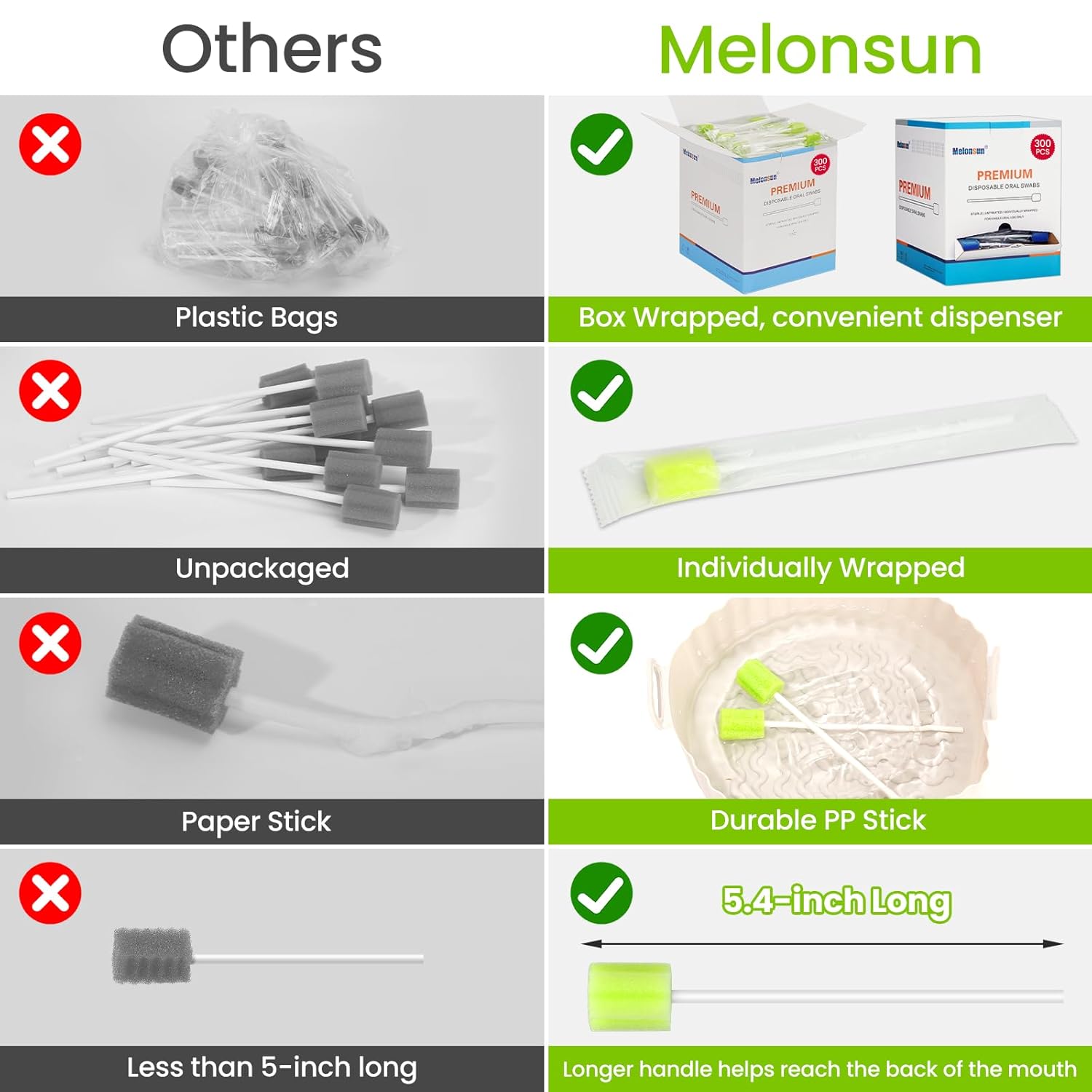 - ❤️【100% Non-Abrasive Foam – Gentle Yet Effective】Melonsun oral swabs are made of 100% non-abrasive, soft foam—safe for sensitive teeth, gums, and skin. They gently clean and moisturize without irritation, making them ideal for seniors, adults, children, and post-surgery oral care. Also suitable for pet mouth cleaning. The bright-colored swabs add a cheerful touch to your daily oral care routine.