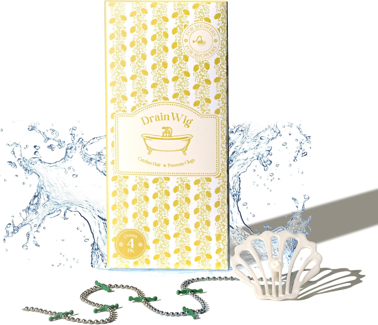 DrainWig Shower Drain Hair Catcher – Disposable White Ocean (4-Pack) – No-Touch Hair Removal for Flat Shower Drains – As Seen on Shark Tank