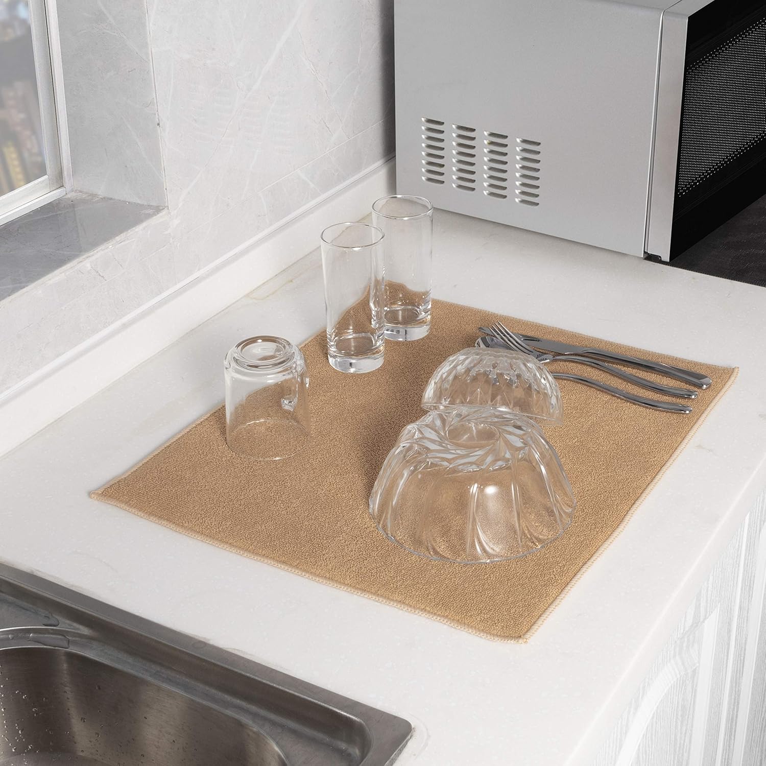 Absorbent, Reversible Microfiber Dish Drying Mat for Kitchen, 16 Inch x 18 Inch
