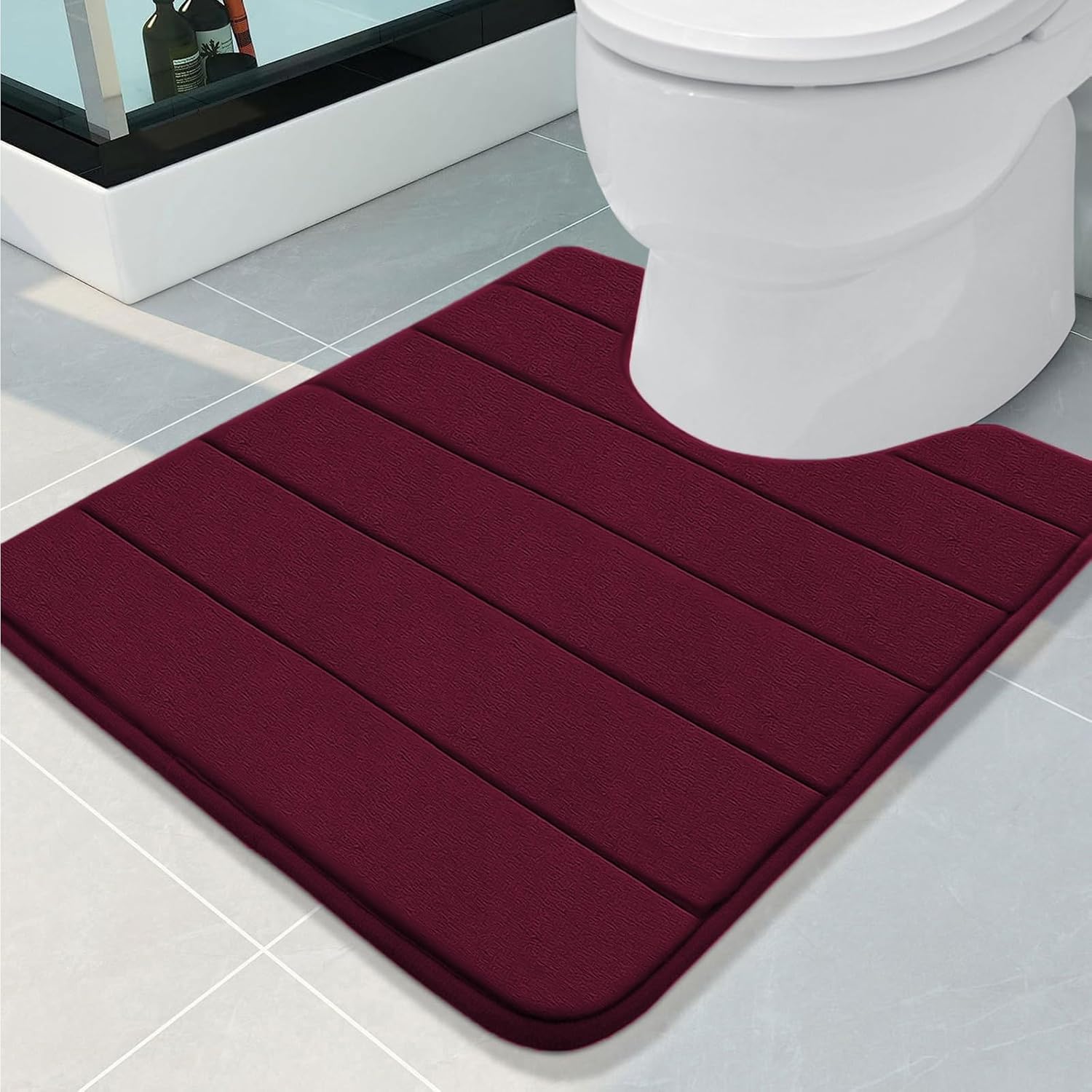 Buganda Memory Foam U-Shaped Contour Toilet Rugs, Non Slip Absorbent, Thick Soft Washable Bathroom Mat, Floor Carpet Bath Rugs Mat for Toilet Base (24" x 20", Burgundy)