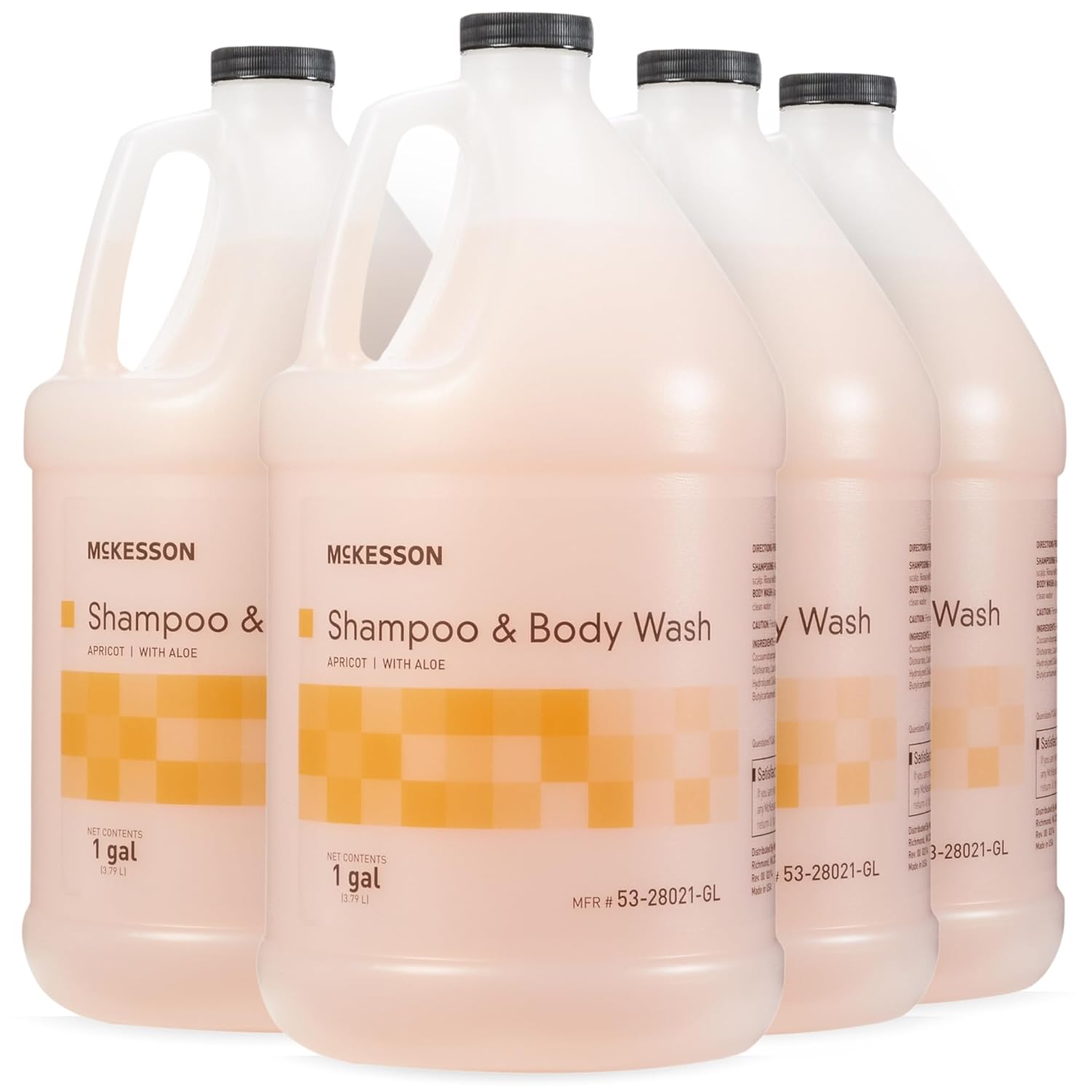 McKesson Body Wash and Shampoo [4 Count] - 1 Gallon Bulk Refill Full Body Wash with Aloe, Apricot Scent - Sensitive Skin & Hair 2‑in‑1