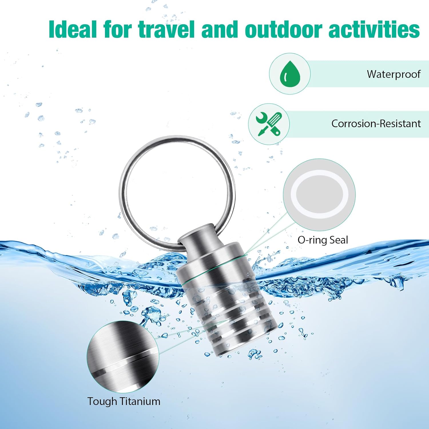 - 【Waterproof & Corrosion-Resistant】Made from titanium, this keychain pill holder resists corrosion, enduring seawater, acidic, and alkaline environments. Ideal for travel and outdoor activities