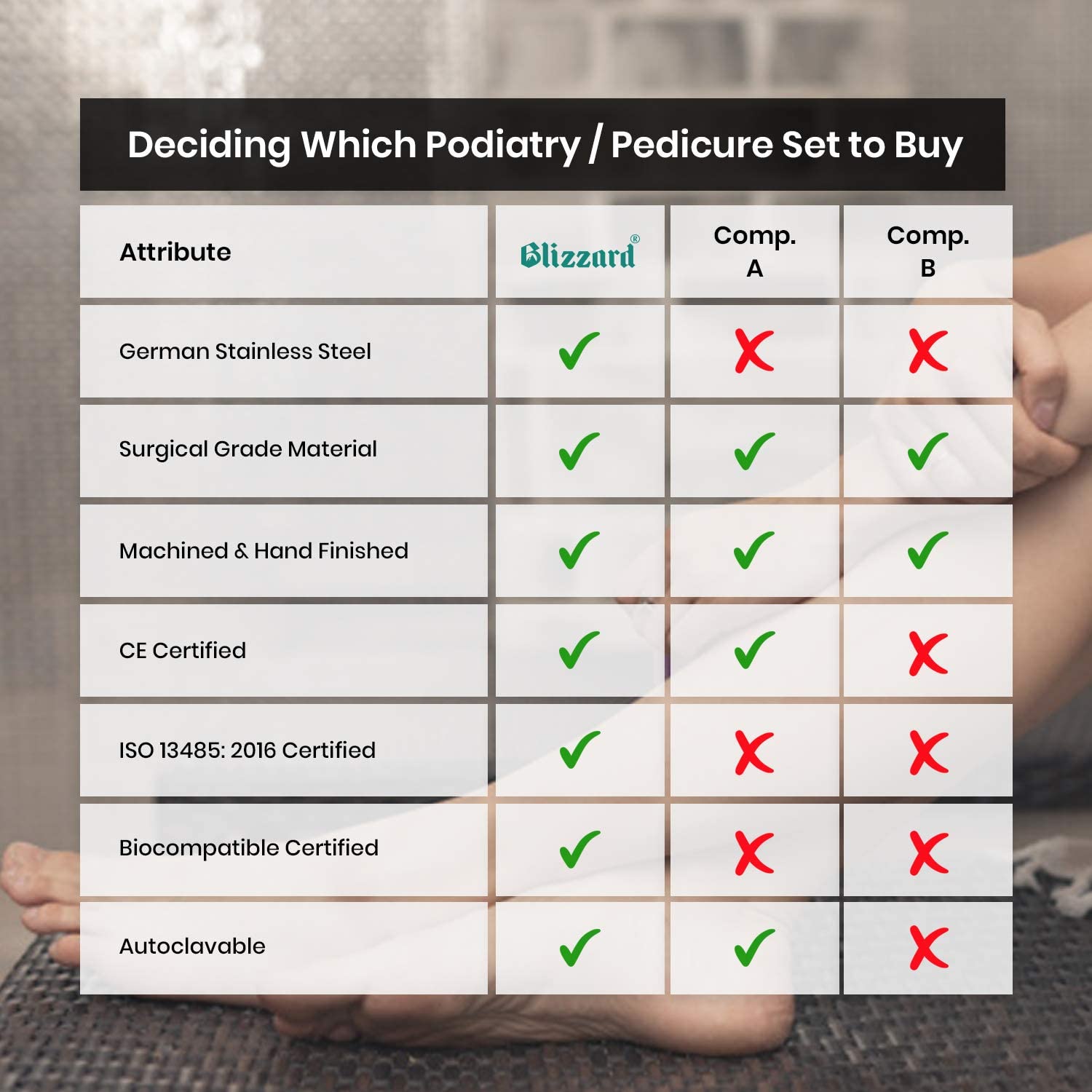 - Hospital grade medical device: our reusable, fully autoclavable podiatry instrument set is built from premium German steel to the highest quality standards; ISO 13485, ISO 9001 and CE certified.
