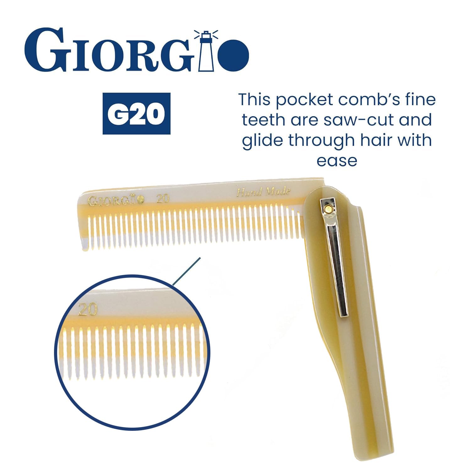 Giorgio G20 IVY Folding Fine Tooth Mustache and Beard Comb 6.5 Inches - Sawcut and Hand Polished Ivory Styling and Travel Comb for Everyday Hair Care