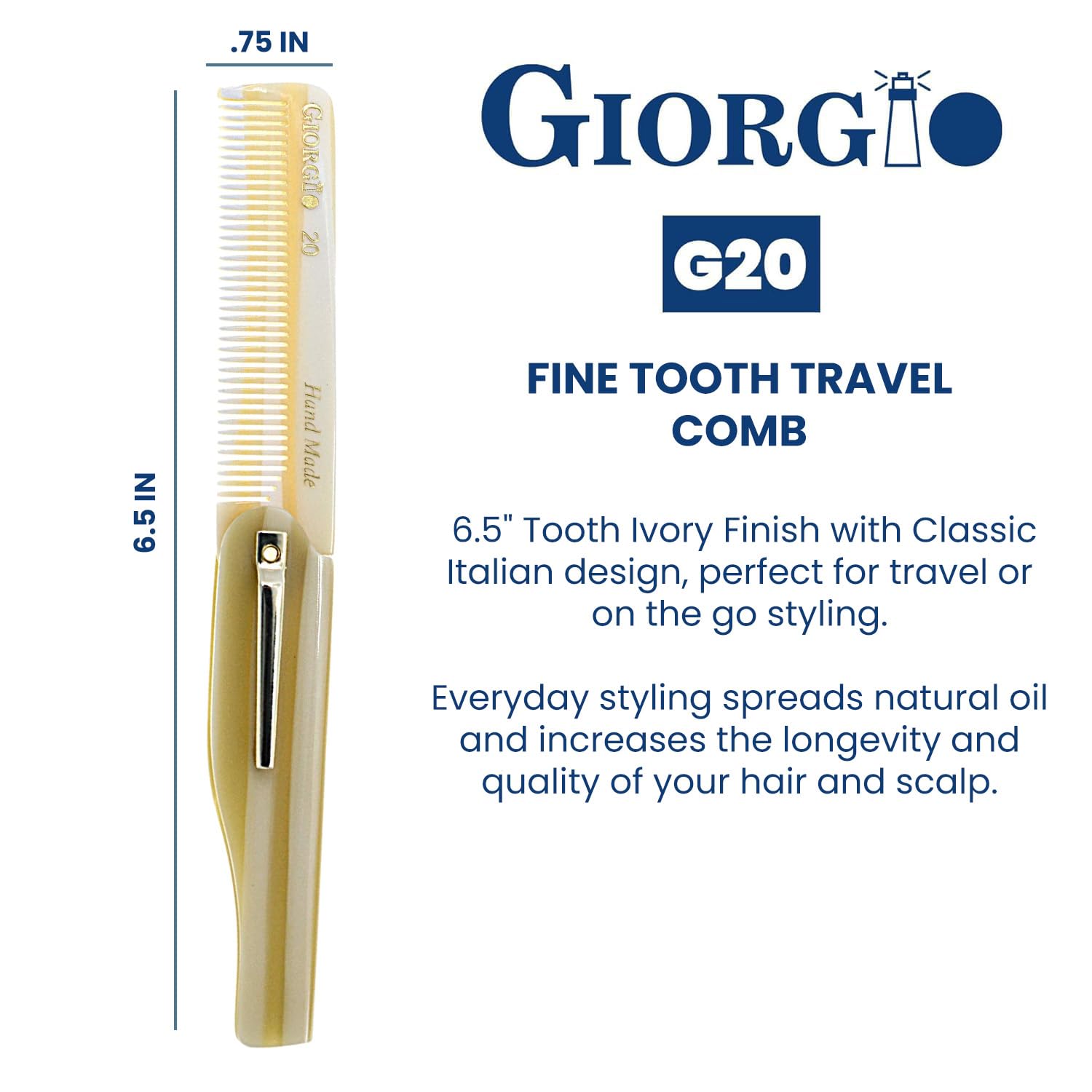Giorgio G20 Fine Tooth Folding Mustache and Beard Comb - Small Pocket Comb for Everyday Hair Care and Styling - Sawcut and Hand Polished (Ivory)
