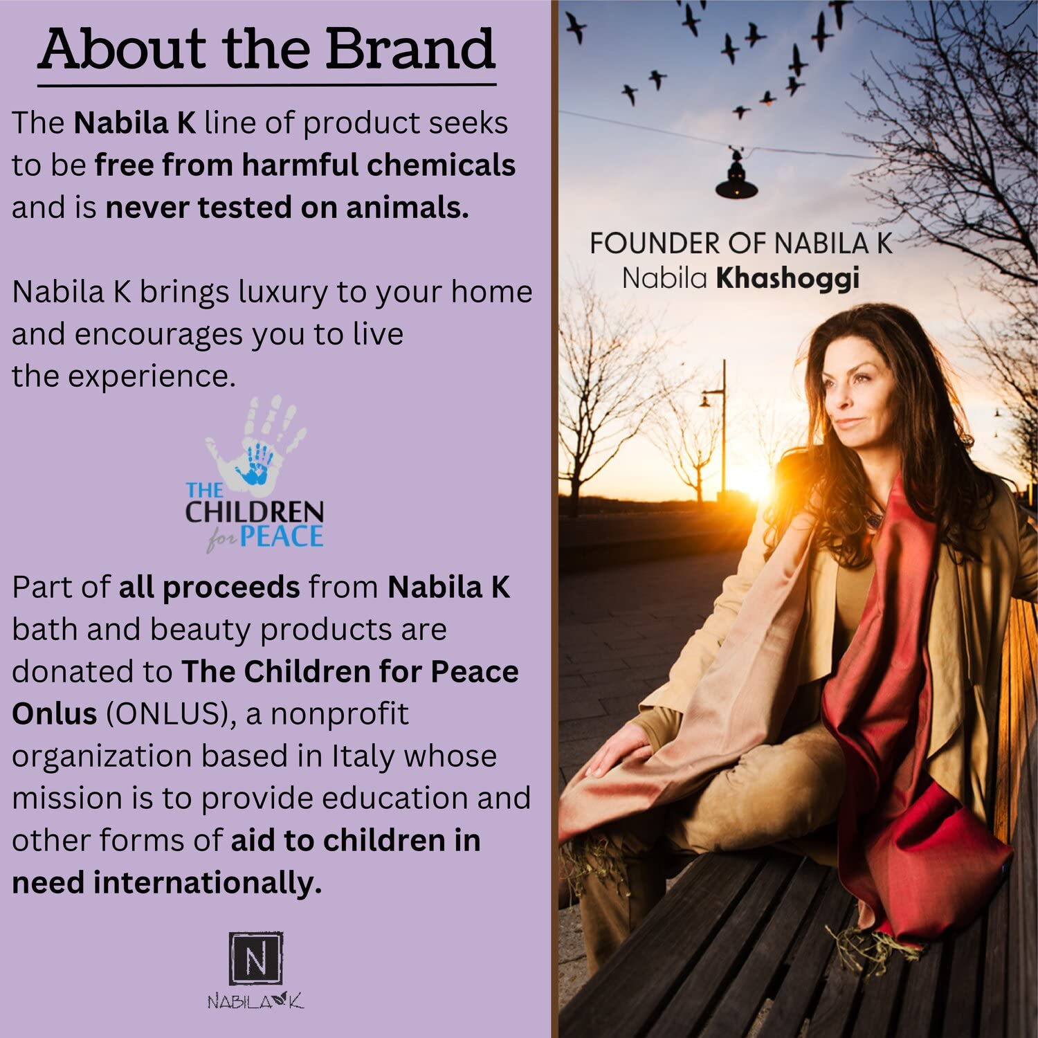 - All Nabila K products are plant and mineral-based, cruelty-free, and ethically sourced. Our healthy and natural products are made with the finest ingredients inspired by the Mediterranean to enrich your daily life with luxury. Sized with travel in mind, take Nabila K products with you everywhere you go! Made in the USA.