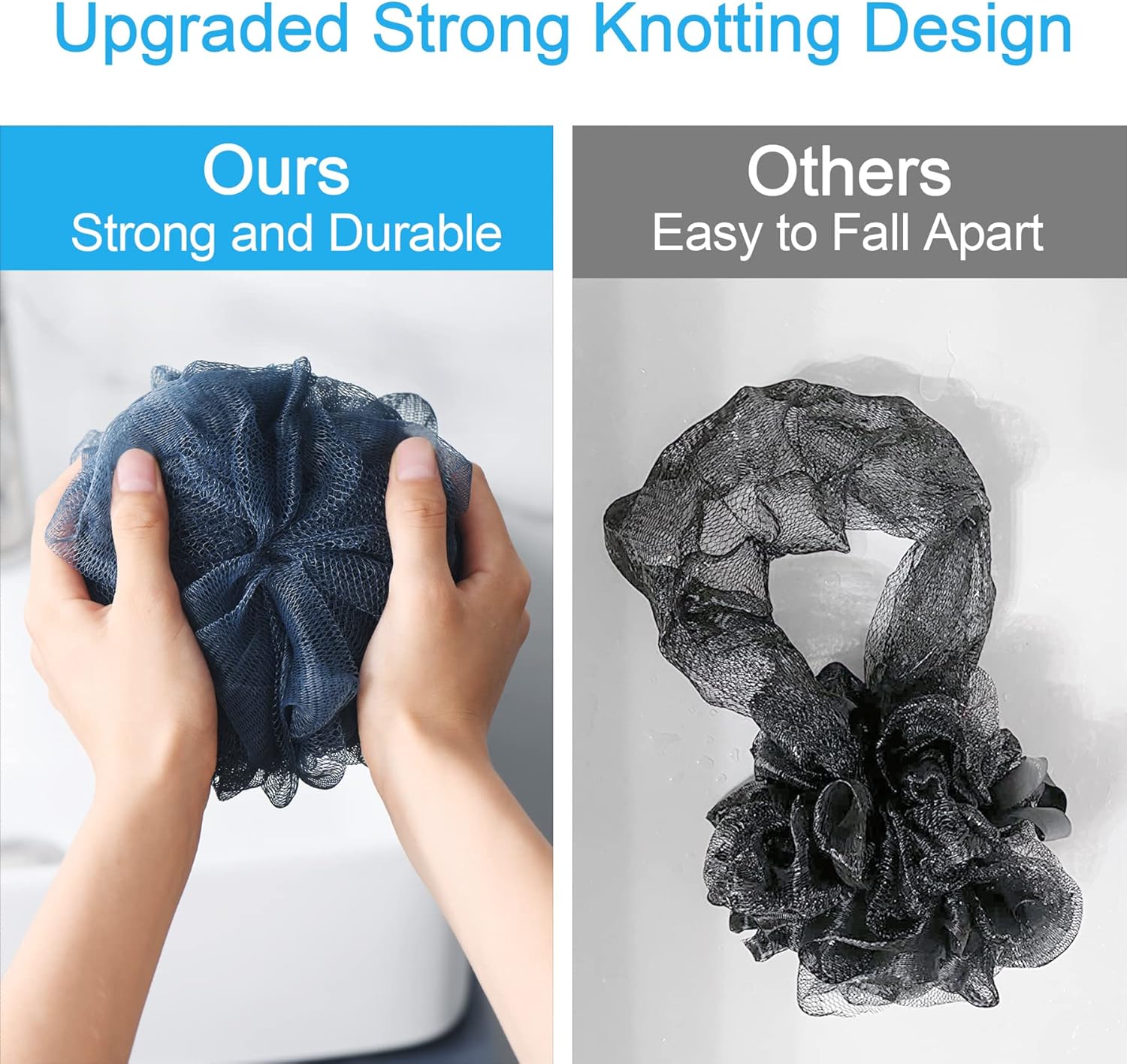 - Strong knotting design: The improved version of the loofah adopts special reinforcement and knotting technology, which greatly enhances the firmness and durability of the internal connection of the bath sponge.
