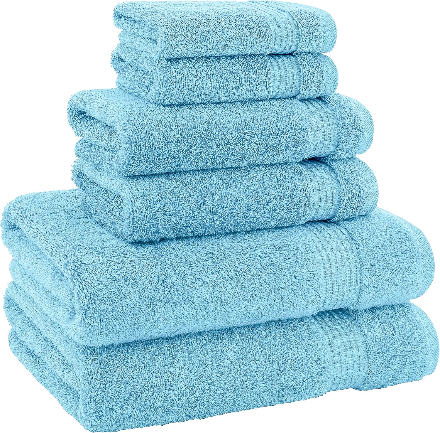 American Veteran Towel, 100% Cotton Turkish 6 Piece Towel Set Luxury Towels Set of 6 for Bathroom Essentials, 2 Bath Towels 2 Hand Towels 2 Washcloths, Sky Blue