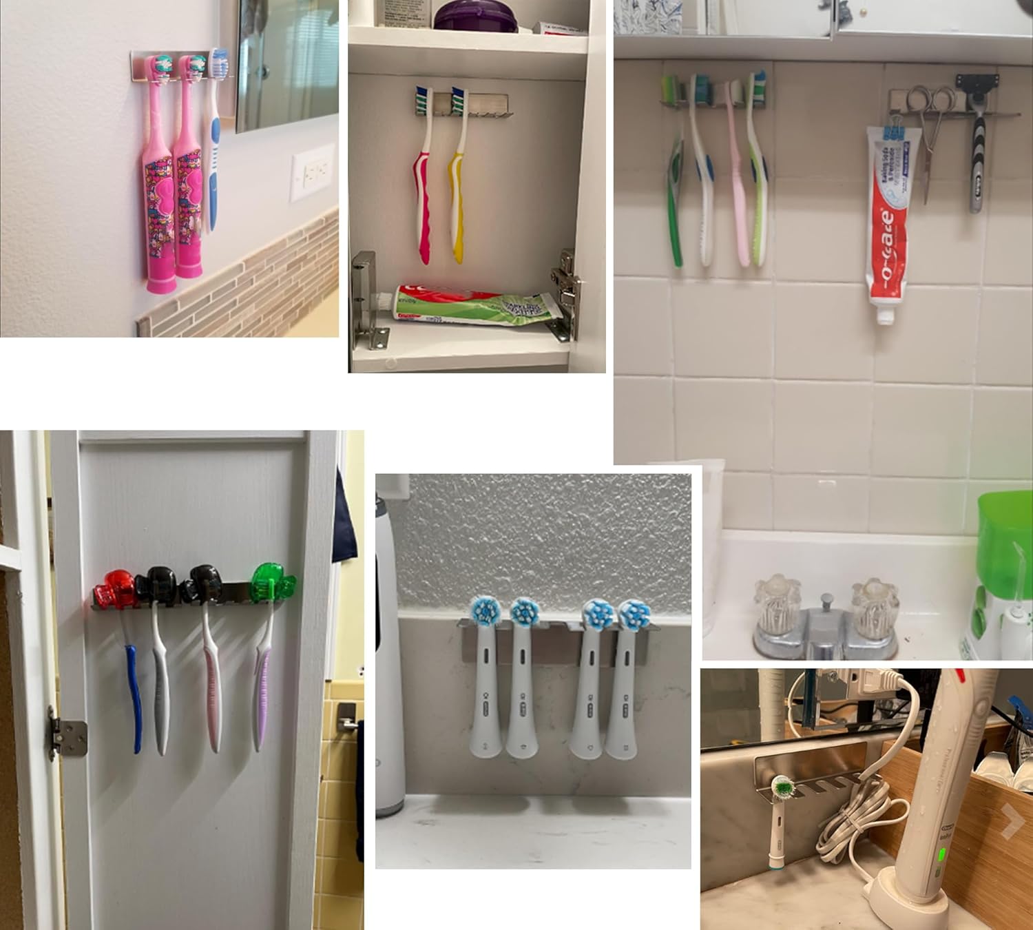 - [Family Toothbrush Holder] - 5 slots for a family of 5,or use it to hold different items in your bathroom, such as children's toothbrushes, adult toothbrushes, electric toothbrushes, or razors, 5 holes placed separately to keep them dry and clean.