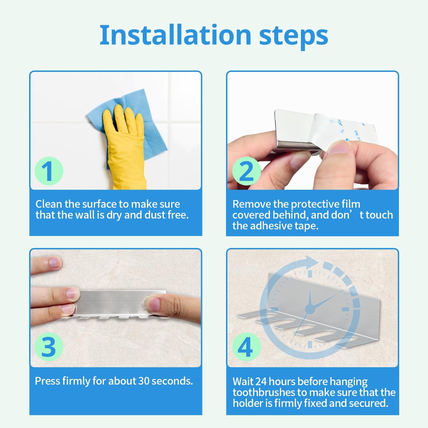 - [Space Saving] - With the dimensions of 3.9”long x 1.1”wide, this toothbrush holder can easily finds a place to install even in the smallest bathroom/washroom/cabinet.It looks very elegant and DO NOT take much space.
