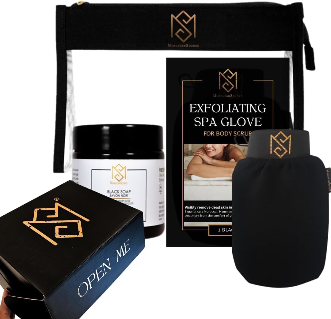 - HOW TO USE: Step 1: Soak in warm water for at least 10 minutes. Step 2: Apply the Moroccan black soap and leave it on for 2 min then rinse it off completely off your skin. Step 3: Wet our exfoliating glove and squeeze all water out then proceed with exfoliating your skin in an up and down motion until dead skin comes off. 4) Moisturize with our pure Argan oil for a silky smooth skin.NOTE: Skin should be soap-free when using the glove.