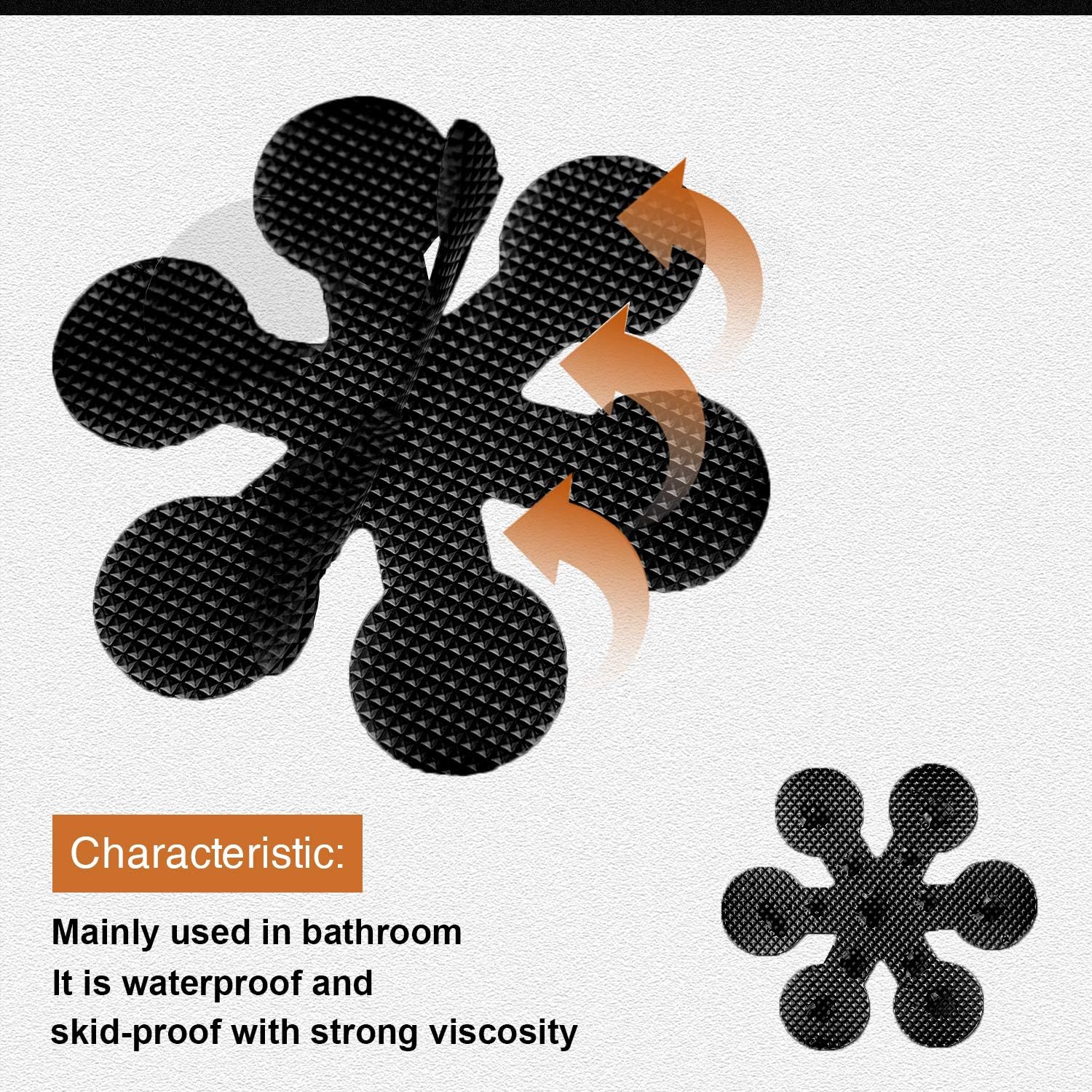 - Design Principle. Each sticker is made in such a way that it easily attaches to the surface using special glue. The upper surface comes with approximately 1250 tiny protrusions per piece. These protrusions are meant to increase friction. So you can stay safe with it and it’s also gentle for you skin. At the same time, this design is meant to allow water to flow freely further reducing the chances of soapy water accumulating.