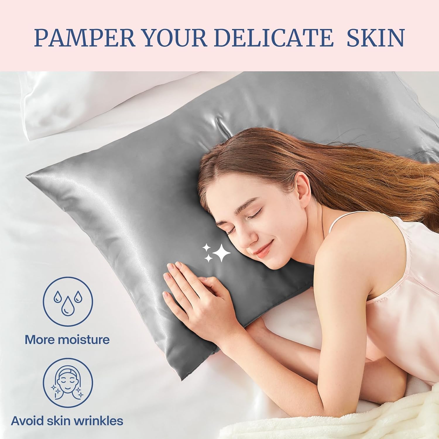 BEDELITE Satin Pillowcase for Hair and Skin, Super Soft and Cooling Similar to Silk Pillow Cases 2 Pack with Envelope Closure, Gift for Women Men(20"x30" Queen Size, Grey)