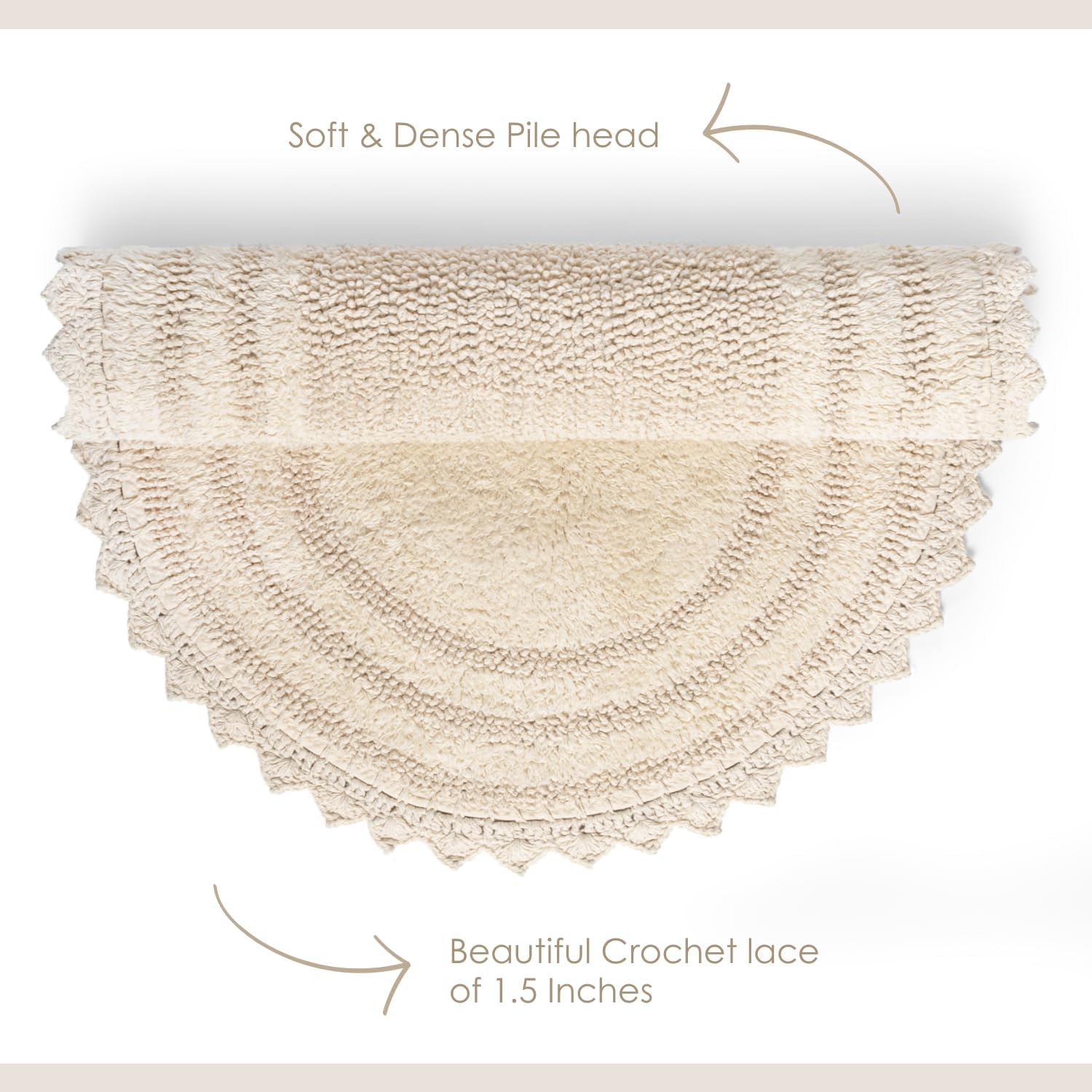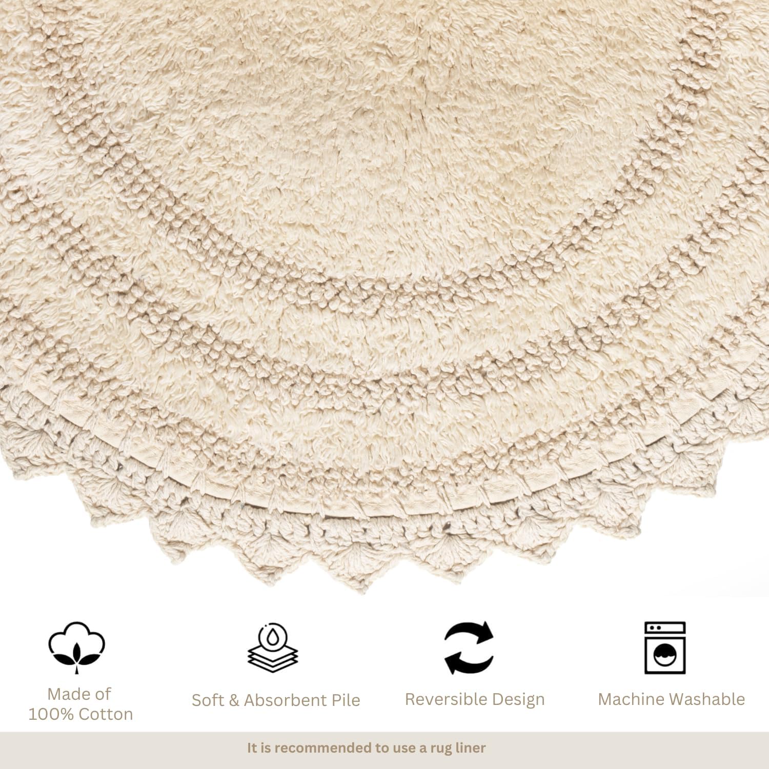 RAJRANG Circle Bathroom Mat for Kitchen and Spa with Crochet Pattern Cotton Absorbent Soft Reversible Woven Bath Rug Shortbread Round 24 Inches