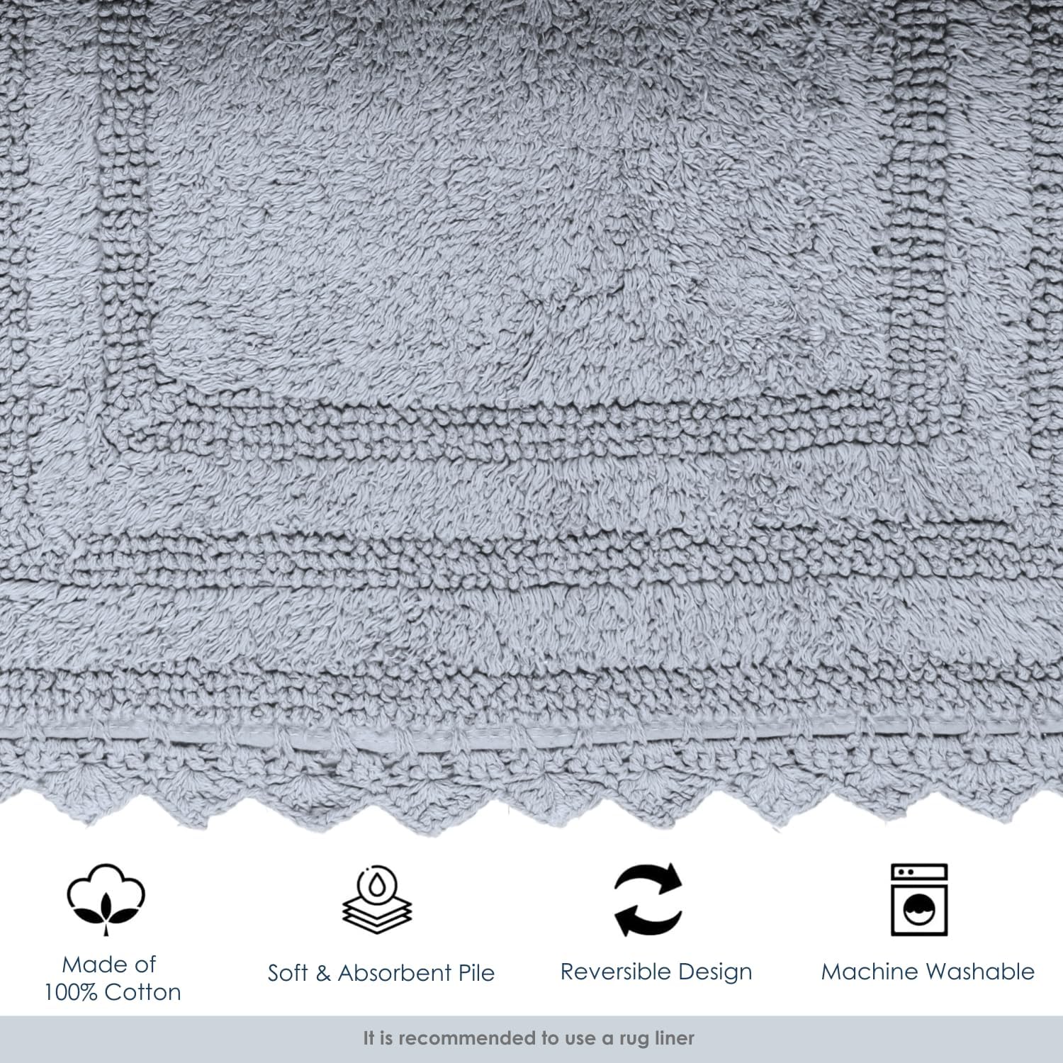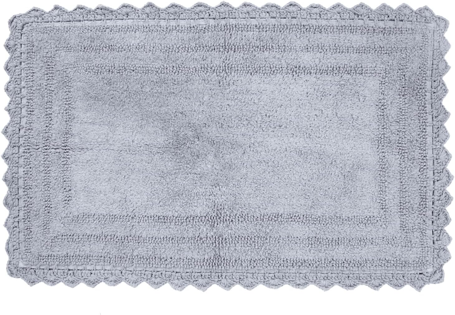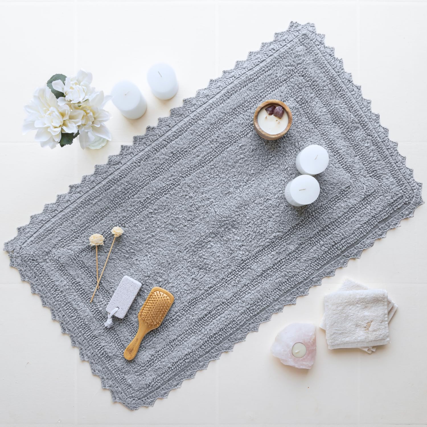 RAJRANG Light Grey Bath Mat for Bathroom Spa with Crochet Absorbent Soft Reversible Boho Bath Rug Rectangle 34x21 Inch