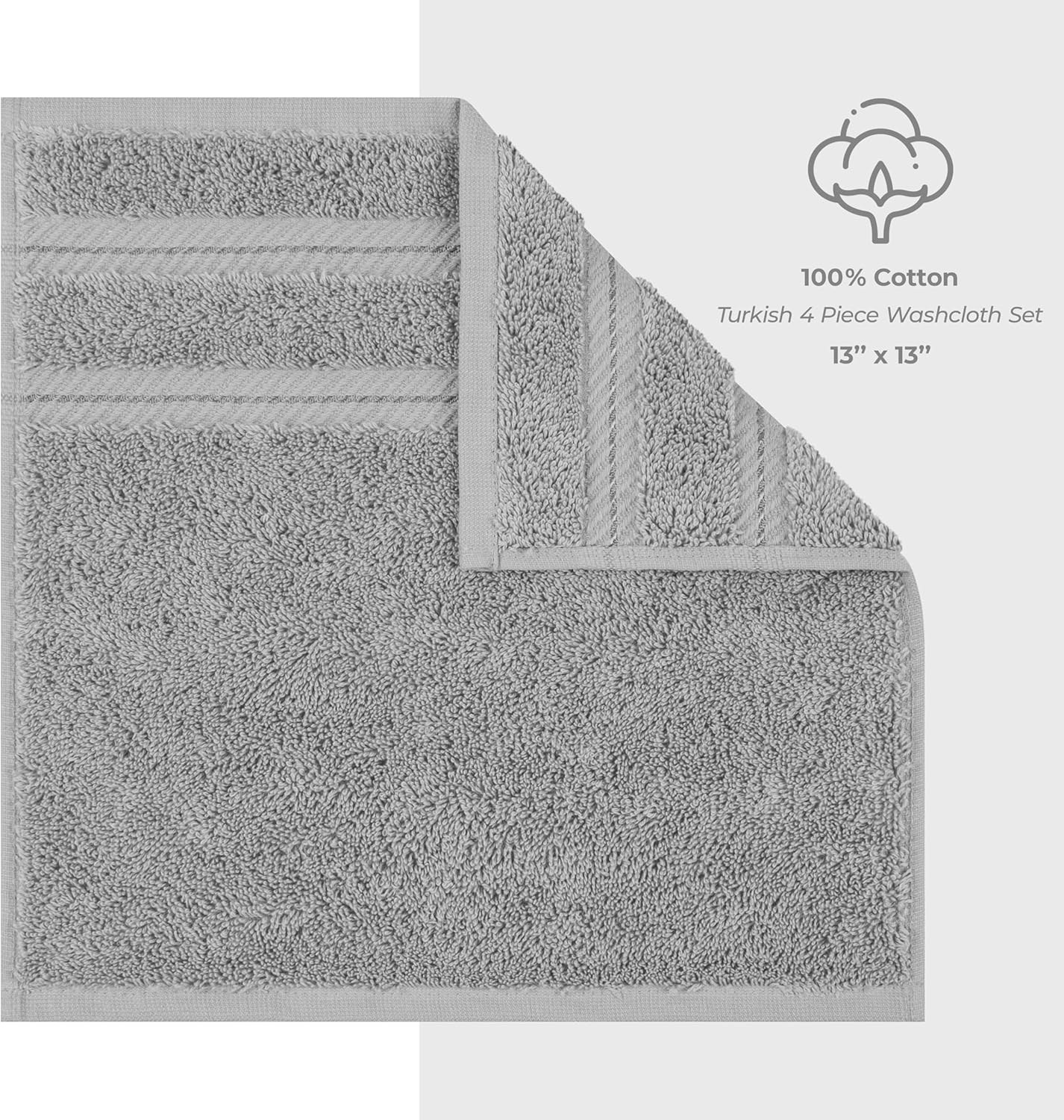 American Soft Linen Luxury Washcloths for Bathroom, 600 GSM 100% Cotton 4 Piece Turkish Wash Cloth Set, 13x13 in Soft Rags for Body and Face, Light Grey Washcloths