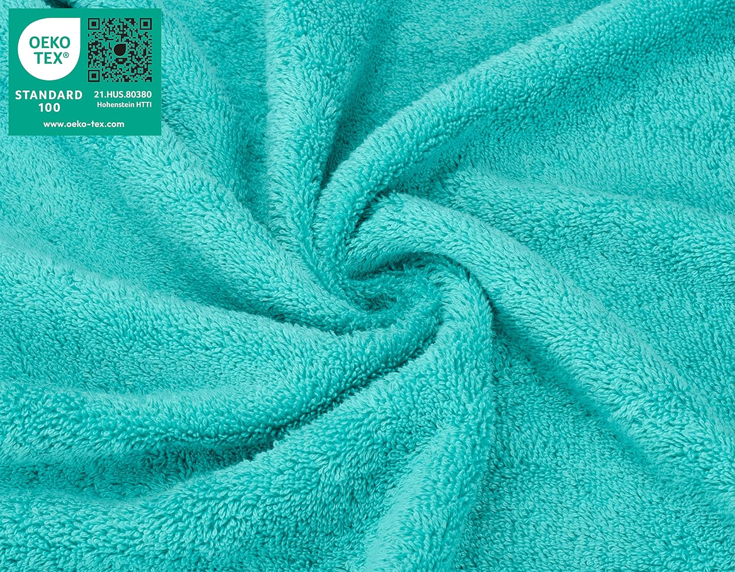 American Soft Linen Luxury Washcloths for Bathroom, 600 GSM 100% Cotton 4 Piece Turkish Wash Cloth Set, 13x13 in Soft Rags for Body and Face, Turquoise Blue Washcloths
