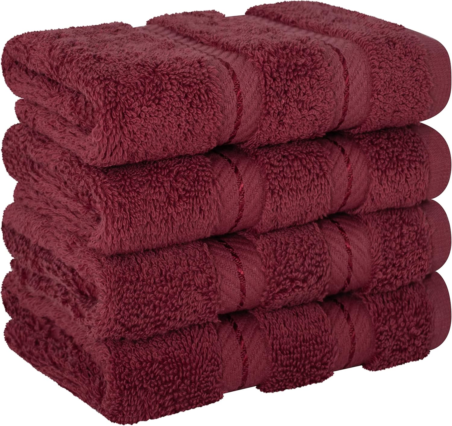 American Soft Linen Luxury Washcloths for Bathroom, 600 GSM 100% Cotton 4 Piece Turkish Wash Cloth Set, 13x13 in Soft Rags for Body and Face, Bordeaux Washcloths