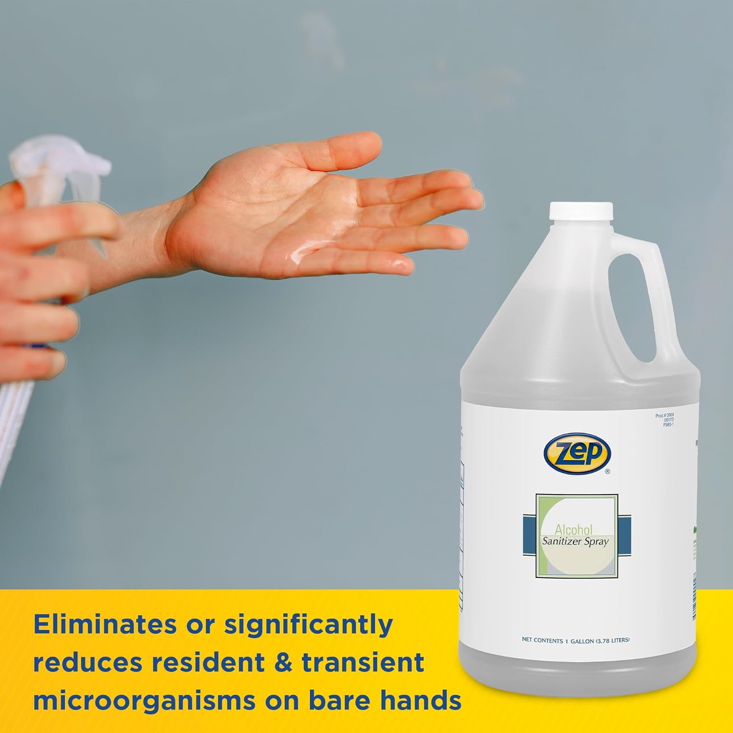 Zep Alcohol Hand Sanitizer Spray Refill - 1 Gallon (Case of 4) 90024-70% Ethanol-Based, Non-Foaming for Dispensers, Manufactured in the USA