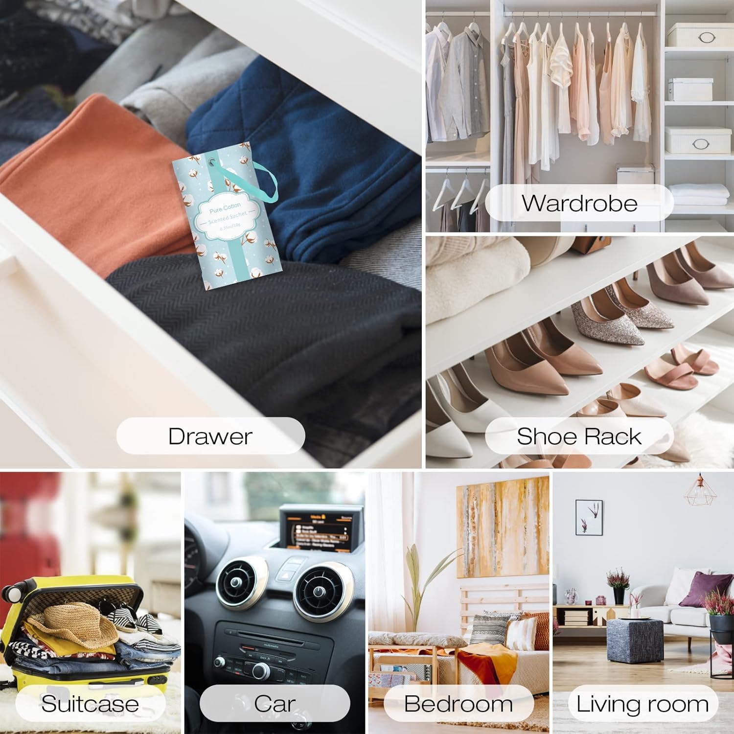 SCENTORINI Sachets for Drawers and Closets, Cotton Scented Bags for Long-Lasting, 14 Pack Home Fragrance Sachet for Closet, Drawer, Wardrobe