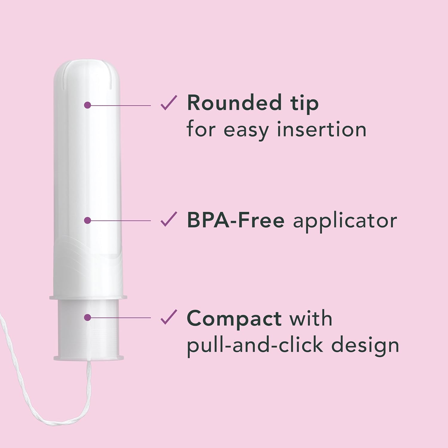 Rael Tampons, Compact Applicator - Made with Organic Cotton, Moderate Absorbency, BPA-Free, Chlorine Free, Leak Locker Technology (36 Count, Regular)