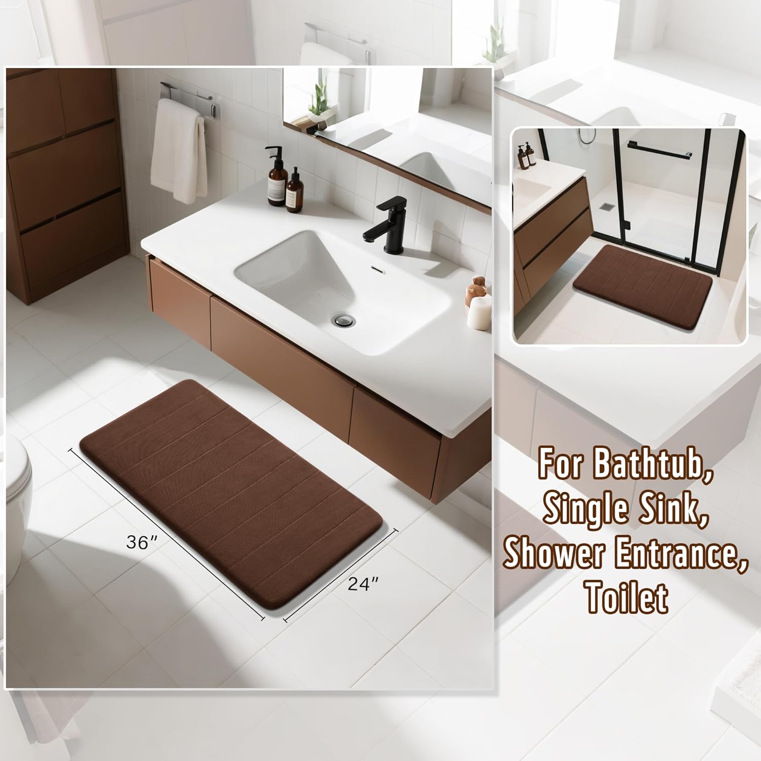 Yimobra Large Bath Mat 36"x24", Super Soft Quick Dry Memory Foam Bathroom Rug, Water Absorbent, Non Slip Backing Machine Washable for Tub Shower, Thick Comfort Support, Brown