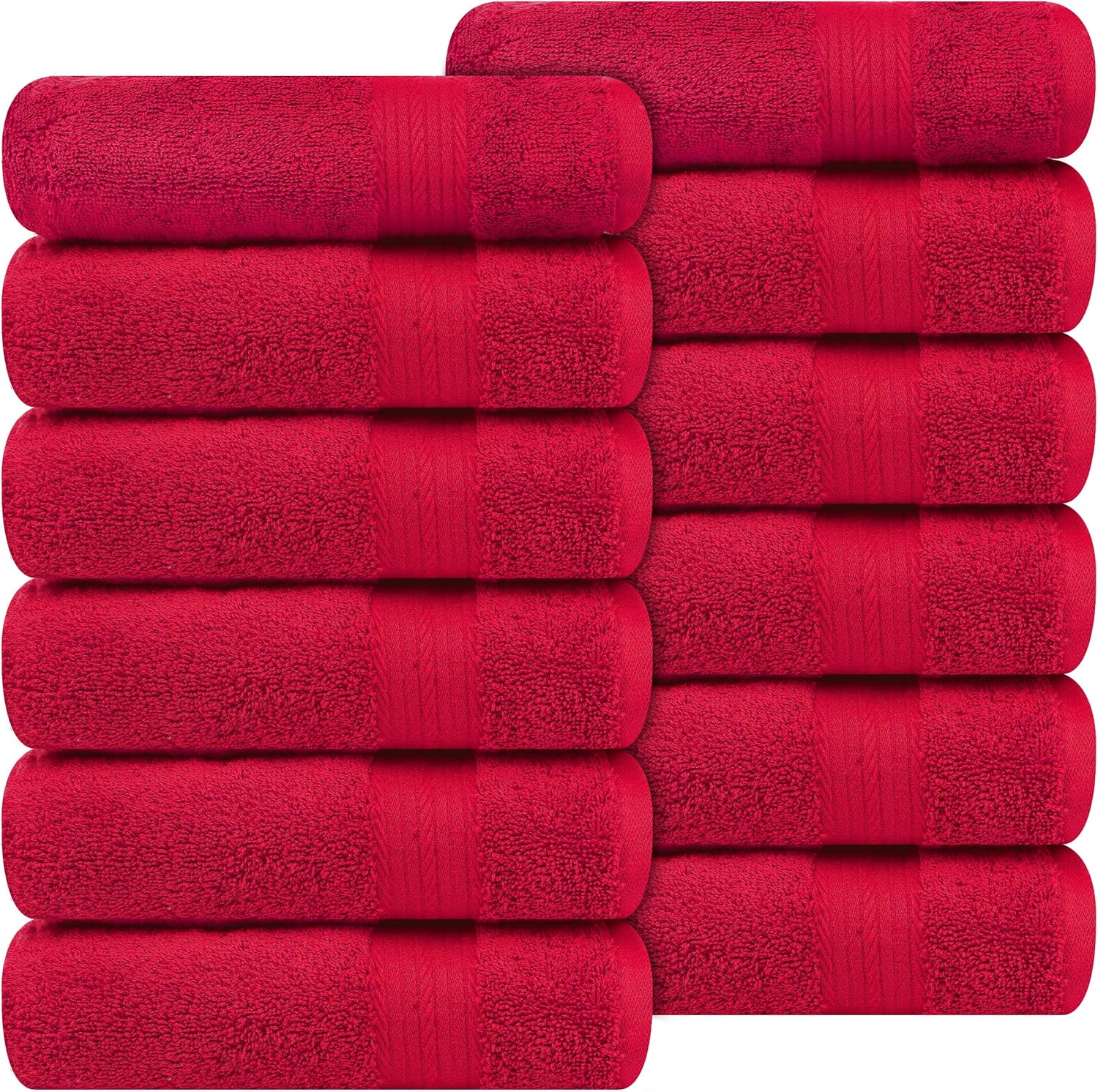 Ample Decor Hand Towel 18 X 28 Inch Pack of 12 600 GSM 100% Cotton, Soft Absorbent Thick Durable Premium Quality, for Hotel, Bathroom, Spa, Daily Use, Gym - Red