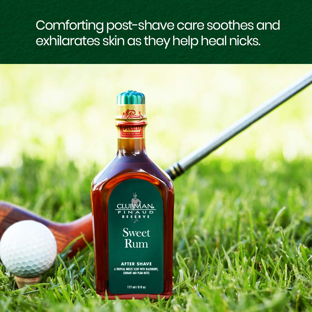 - CONVENIENT, HANDY MASCULINE POST SHAVE LOTION: Here’s Clubman Reserve Sweet Rum After Shave to match any mood, complement any look, and suit any occasion to help you maintain an ultra-macho vibe wherever and whenever! This comes in a handy 6-oz bottle making it easy to pack in your grooming kit for the gym and travel, or in your work bag if you need a mid-day to pick up. Use it after shaving to calm skin, right after showering to stay cool, or right before heading out for the night!