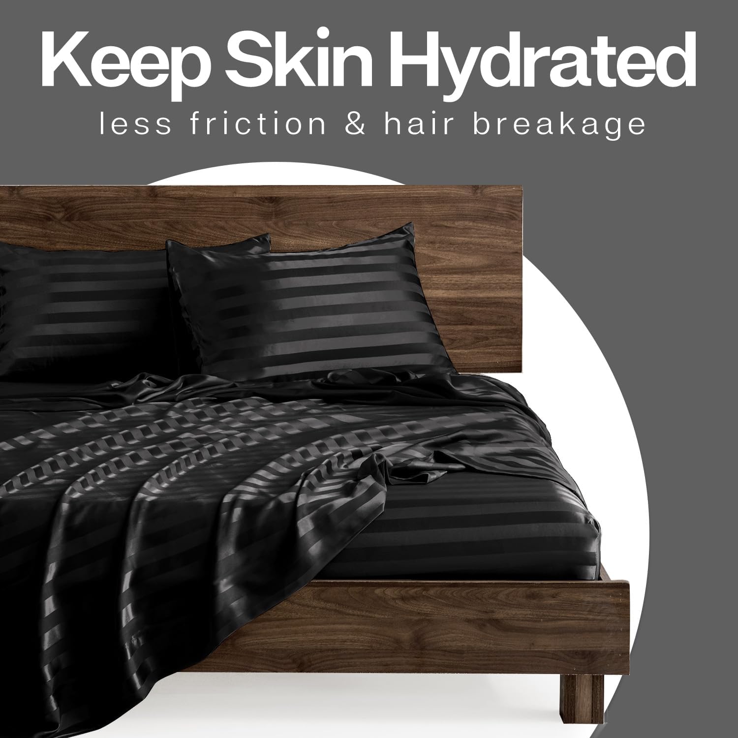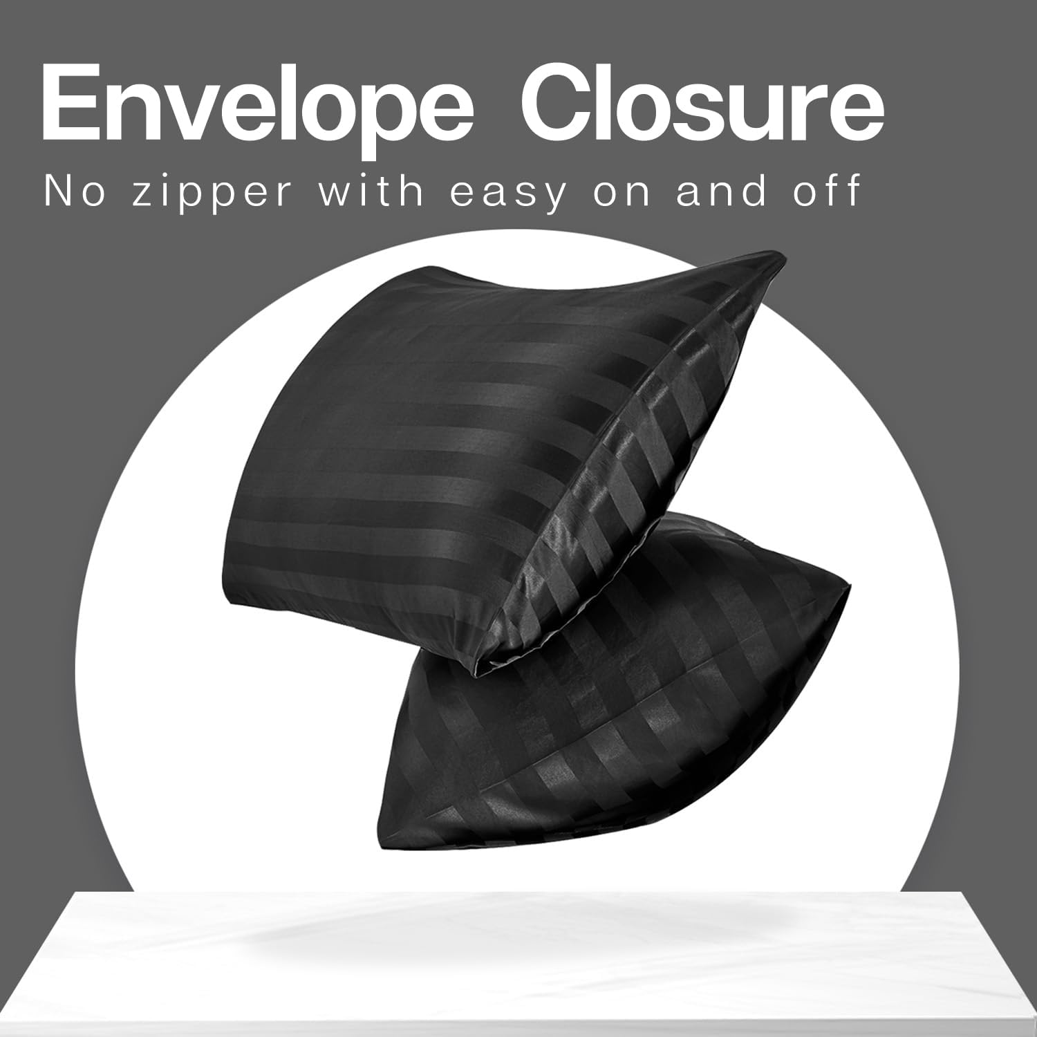 MR&HM Satin Pillowcase for Hair and Skin, Silk Satin Pillowcase 2 Pack, King Size Pillow Cases Set of 2, Silky Pillow Cover with Envelope Closure (20x40, Black Striped)