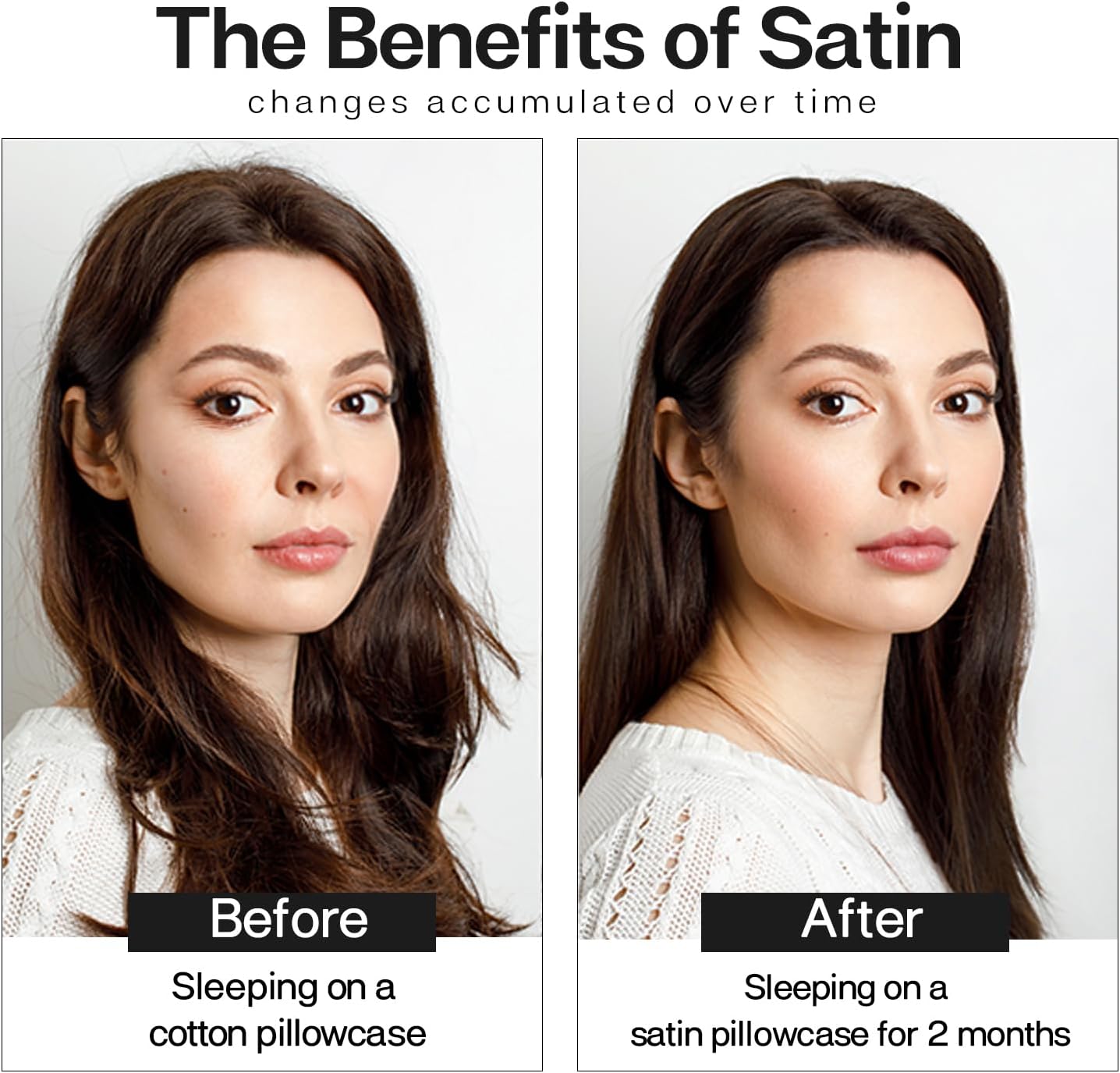 - 【Enhance Your Beauty Sleep】Sleeping on our hypoallergenic non-irritating satin pillowcase can help your skin, too. With less friction tugging at your skin as you sleep, you will experience fewer sleep lines which can equal fewer wrinkles over time.