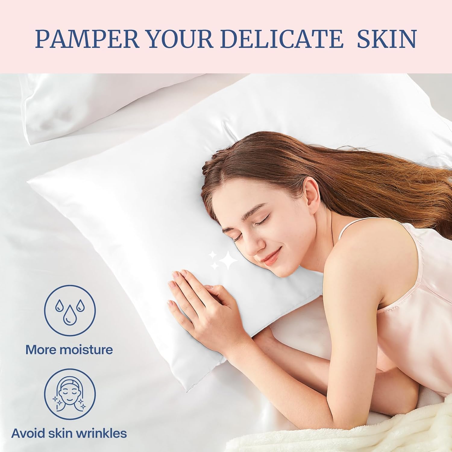 BEDELITE Satin Pillowcase for Hair and Skin, Super Soft and Cooling Similar to Silk Pillow Cases 2 Pack with Envelope Closure, Gift for Women Men(20"x30" Queen Size, White)