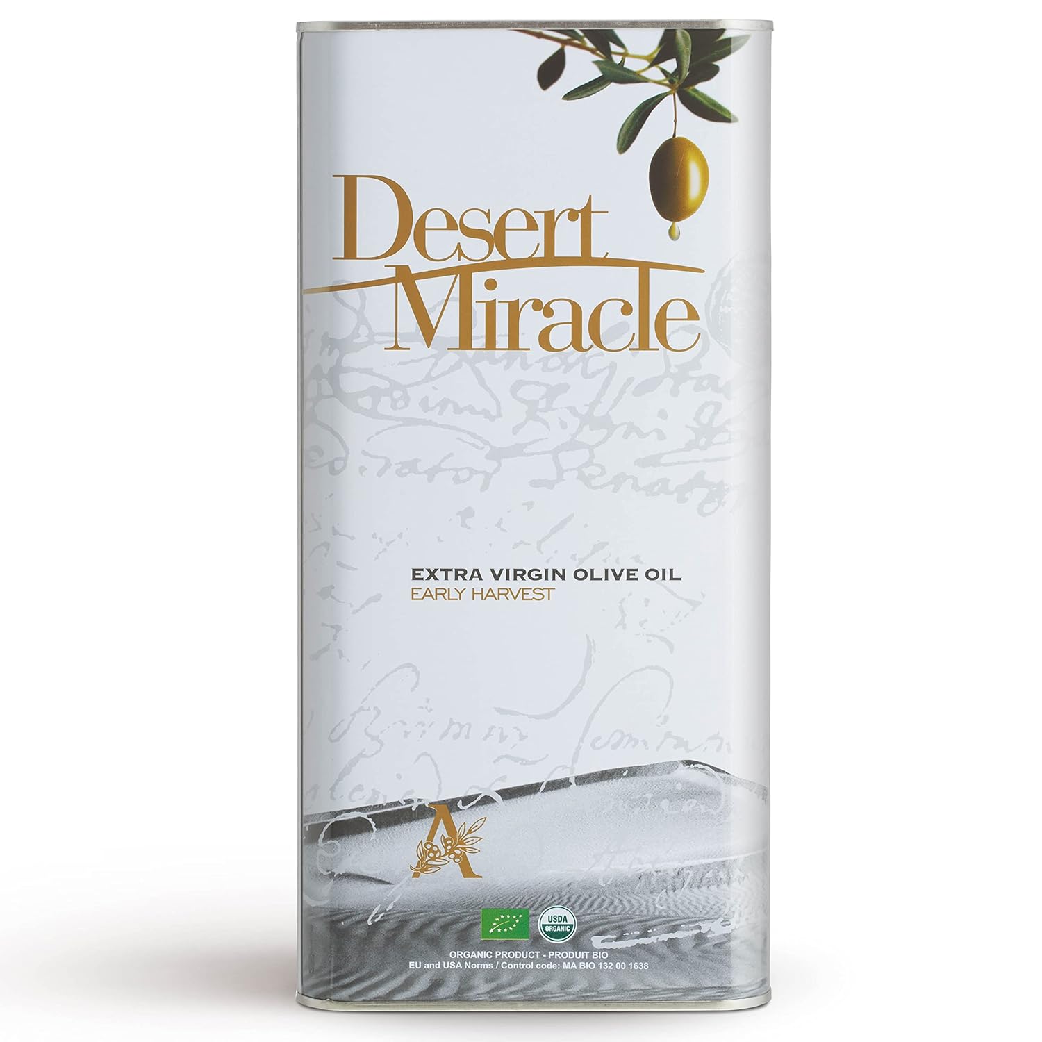 DESERT MIRACLE Cold Pressed Polyphenol Rich Moroccan Olive Oil, Extra Virgin Olive Oil with High Polyphenols, Organic, First Cold Pressed EVOO From Morocco, 5 Liter Can