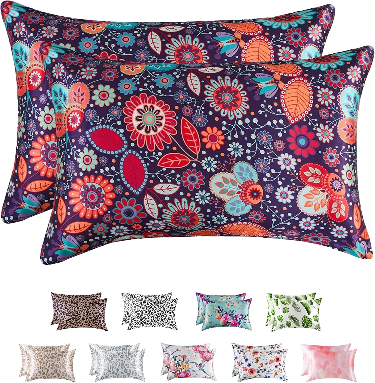 MR&HM Satin Pillowcase for Hair and Skin, Silk Satin Pillowcase 2 Pack, King Size Pillow Cases Set of 2, Silky Pillow Cover with Envelope Closure (20x40, Sunflower)