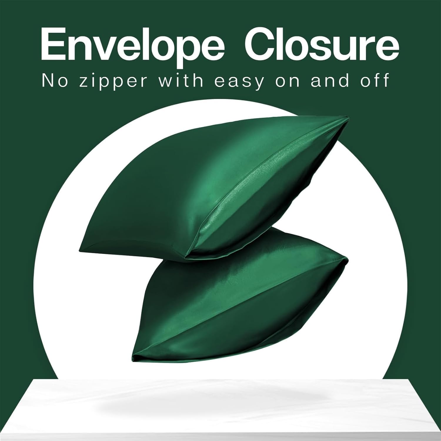 MR&HM Satin Pillowcase for Hair and Skin, Silk Satin Pillowcase 2 Pack, Standard Size Pillow Cases Set of 2, Silky Pillow Cover with Envelope Closure (20x26, Dark Green)
