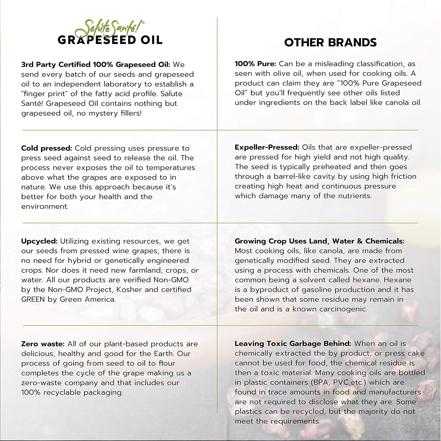 - NON-GMO: Salute Santé! Grapeseed Oil is Cold Pressed, Non-GMO, Kosher and 3rd Party certified 100% grapeseedoil