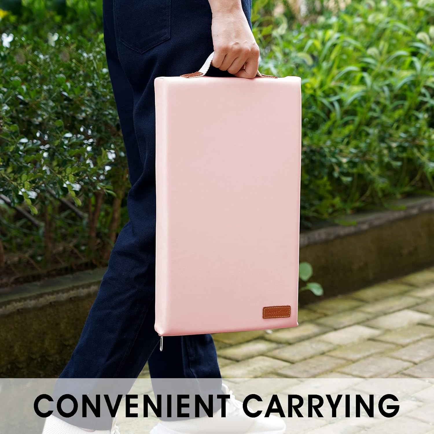 HappyPicnic Waterproof Kneeling Pad for Garden or Bath, 2 inch Thick Soft Foam Kneeler Mat for Gardeners Knee Support or Bathtub Bathing with Handle and Removable Cover - Pink