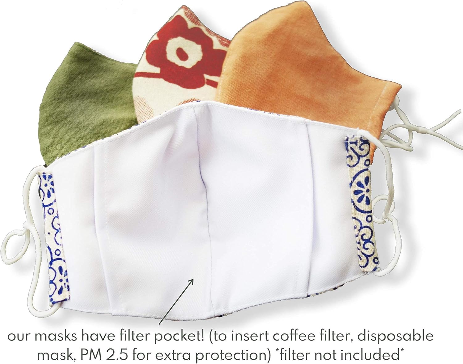 - FASHIONABLE MASKS: Stay stylish while you protect yourself with our unique designs. Blue & White Geometric Design, Peach, Sage Green, and Red & White Floral facemask designs that never go out of style! For more designs check out our collection of masks for Kids, Adults, Men and Women.