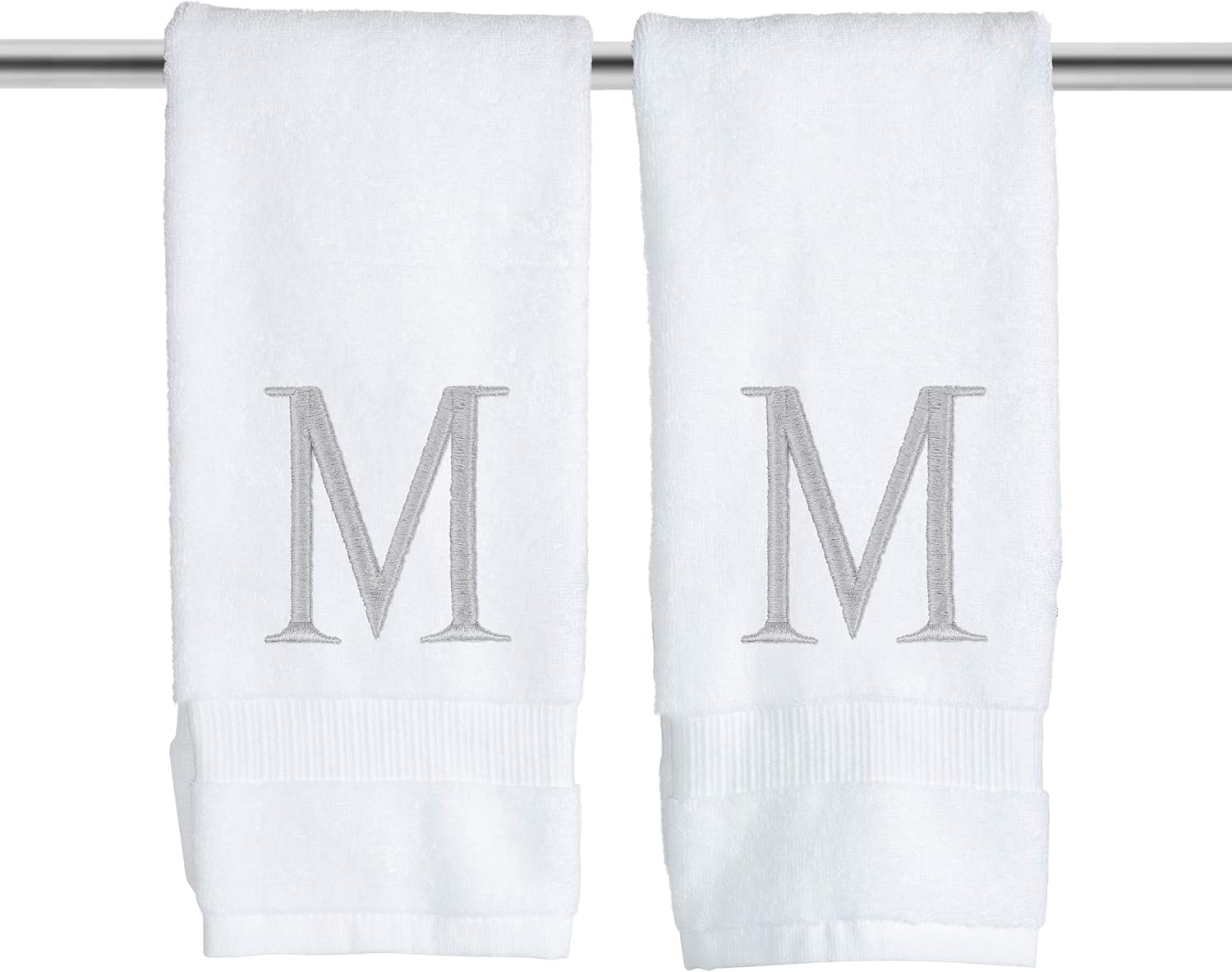 Monogrammed Hand Towels for Bathroom - Luxury Hotel Quality Personalized Initial Decorative Embroidered Bath Towel for Powder Room, Spa - GOTS Organic Certified - Set of 2 Letter M