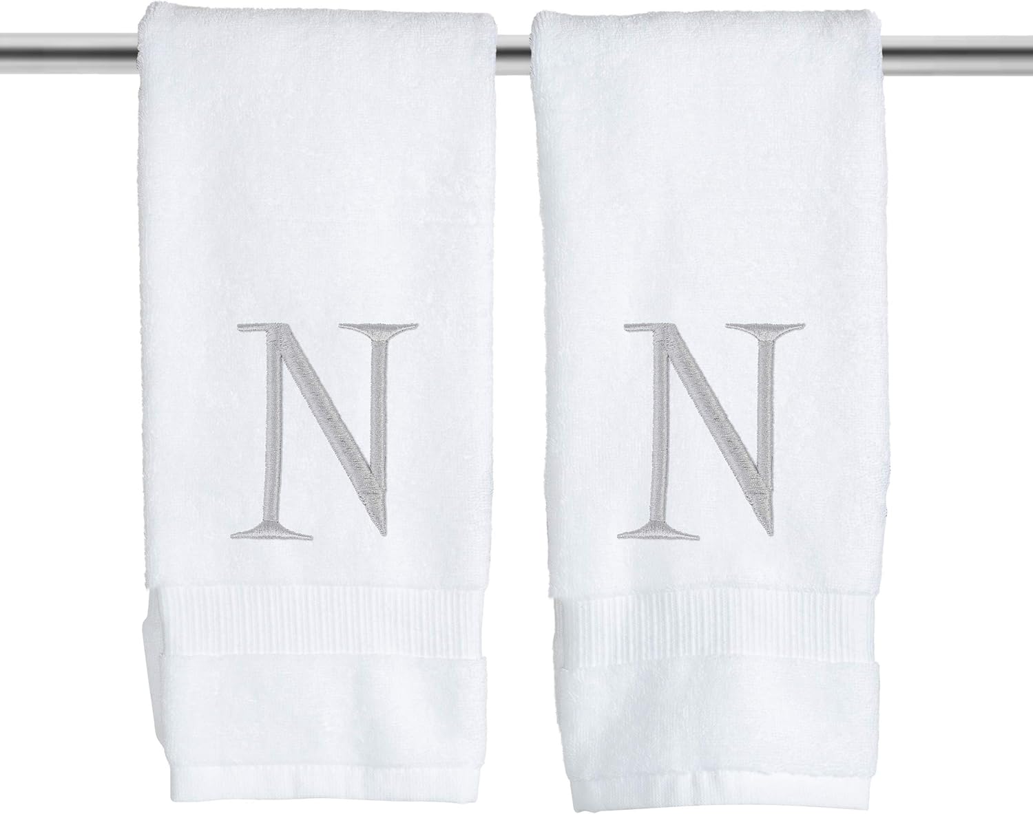Monogrammed Hand Towels for Bathroom - Luxury Hotel Quality Personalized Initial Decorative Embroidered Bath Towel for Powder Room, Spa - GOTS Organic Certified - Set of 2 Letter N