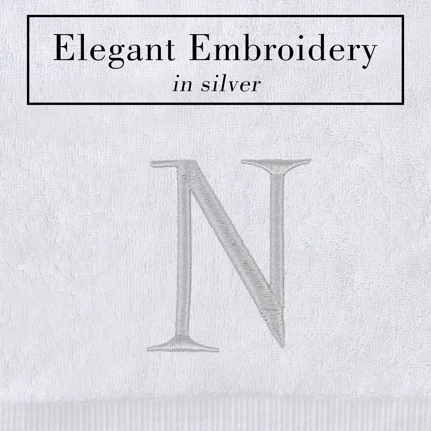 - Premium Quality - High quality durable soft rich monogrammed letter hand towels in white cotton with silver stitching