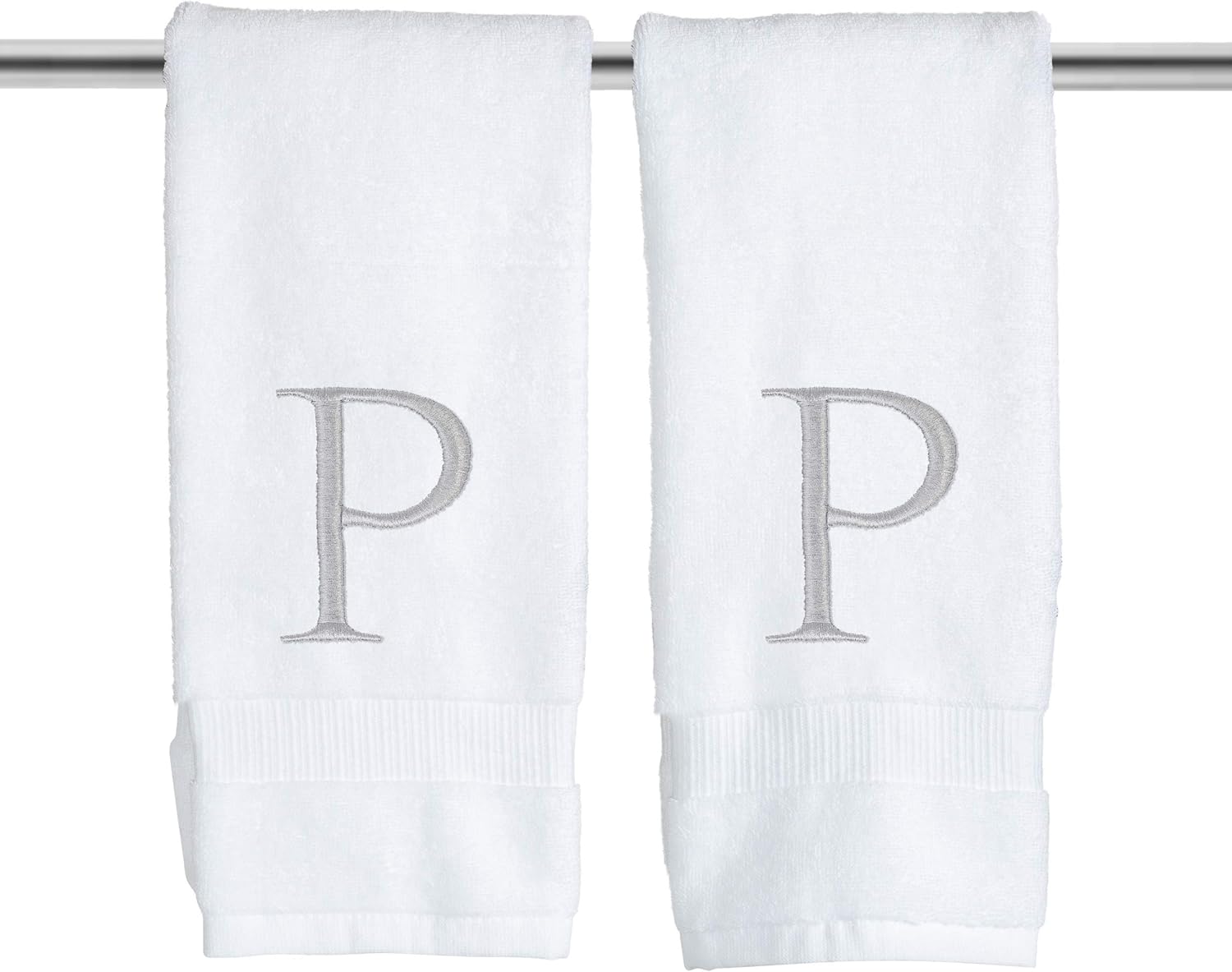 Monogrammed Hand Towels for Bathroom - Luxury Hotel Quality Personalized Initial Decorative Embroidered Bath Towel for Powder Room, Spa - GOTS Organic Certified - Set of 2 Letter P