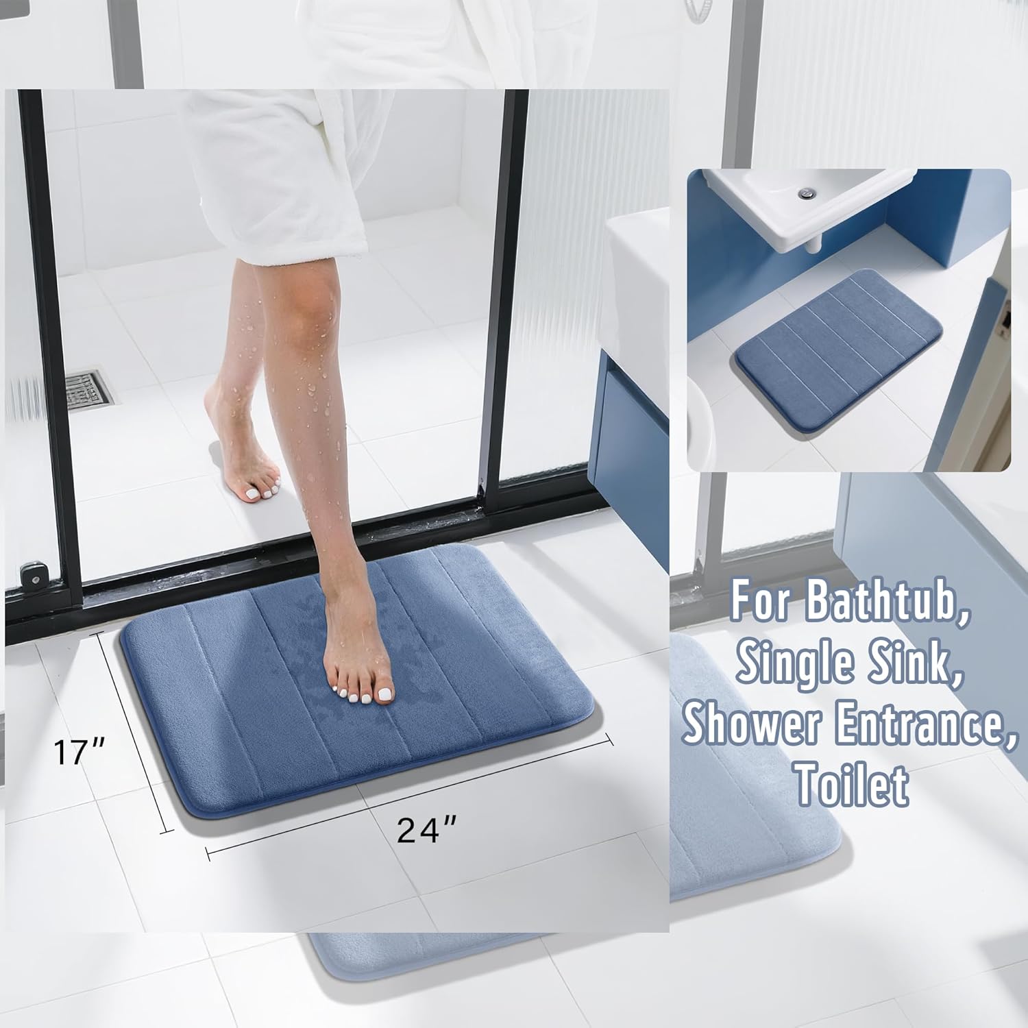 Yimobra Memory Foam Bath Mat, Super Soft Absorbent Bathroom Rug Non Slip 24x17 Inch, Quick Dry, Machine Washable Floor Carpet for Tub Shower, Home Decor Accessories, Denim Blue