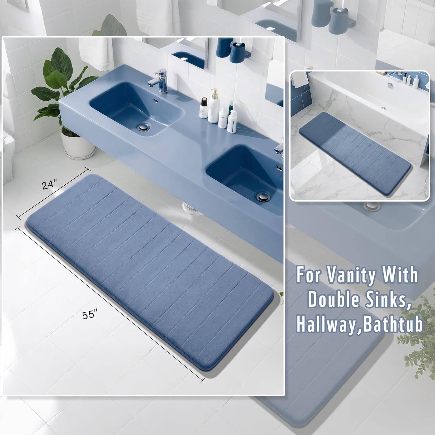 Yimobra Bathroom Runner 55"x24", Non Slip Memory Foam Bath Mat, Super Soft Water Absorbent Hallway Carpet, Machine Washable Rug for Vanity Tub Shower, Denim Blue