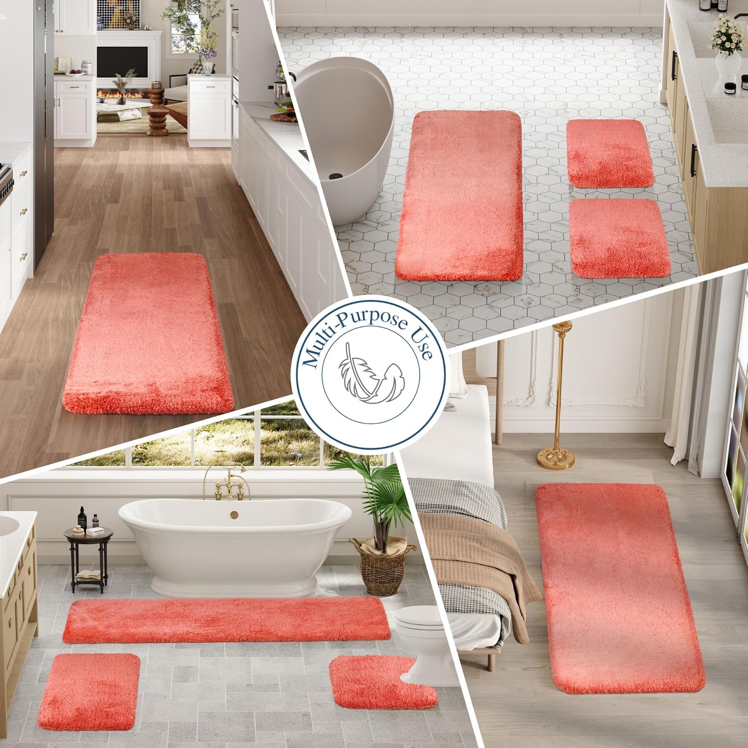 Walensee Bathroom Rug, Living Coral, 24" x 60", Extra Soft, Absorbent Shaggy Microfiber, Non-Slip, Machine Washable