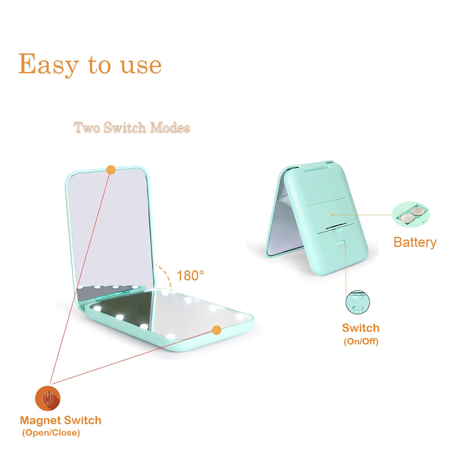 Kintion Pocket Mirror, 1X/3X Magnification LED Compact Travel Makeup Mirror with Light for Purse, 2-Sided, Portable, Folding, Handheld, Small Lighted Mirror for Gift, Cyan