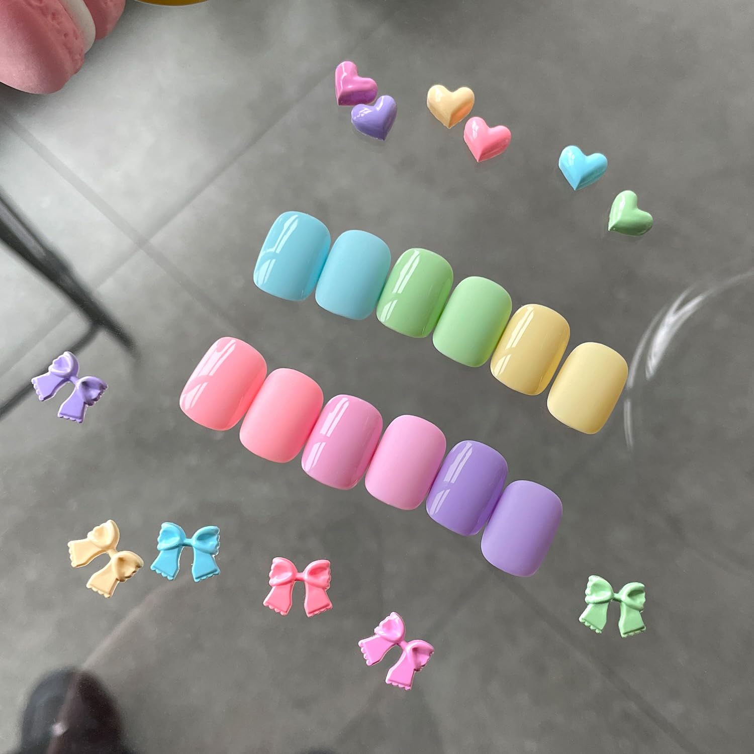 - Included Components : 6 gel nail polishes in pastel colors: pink, green, and blue