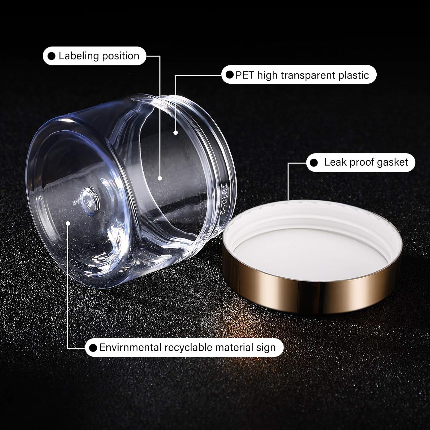 SATINIOR 12 Pack Plastic Container Jars with Lids Round Clear Travel Cosmetic Container Jars for Toiletries, Lotion, Cream, Ointments, Makeup, Rhinestone, Samples, Kitchen Storage(2 oz,Gold)