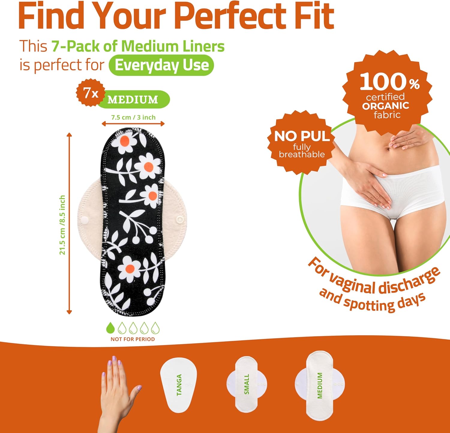 Made in EU - Ultra-Thin Reusable Panty Liners (Medium, 7-Pack) – High-Temp Washable Cloth Panty Liners for Women – Durable & Breathable Organic Cotton Keeps You Fresh & Dry for Daily Vaginal Discharge
