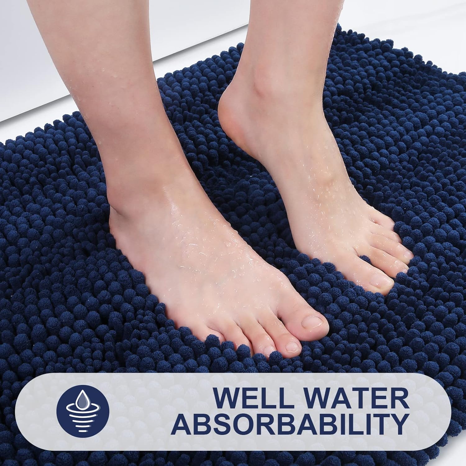 Grandaily Chenille Striped Bathroom Rugs 30x20, Extra Thick and Absorbent Bath Mats, Non-Slip Soft Plush Shaggy Shower Carpet, Machine Wash Dry, Bath Rug for Bathroom, (Medium, Navy)
